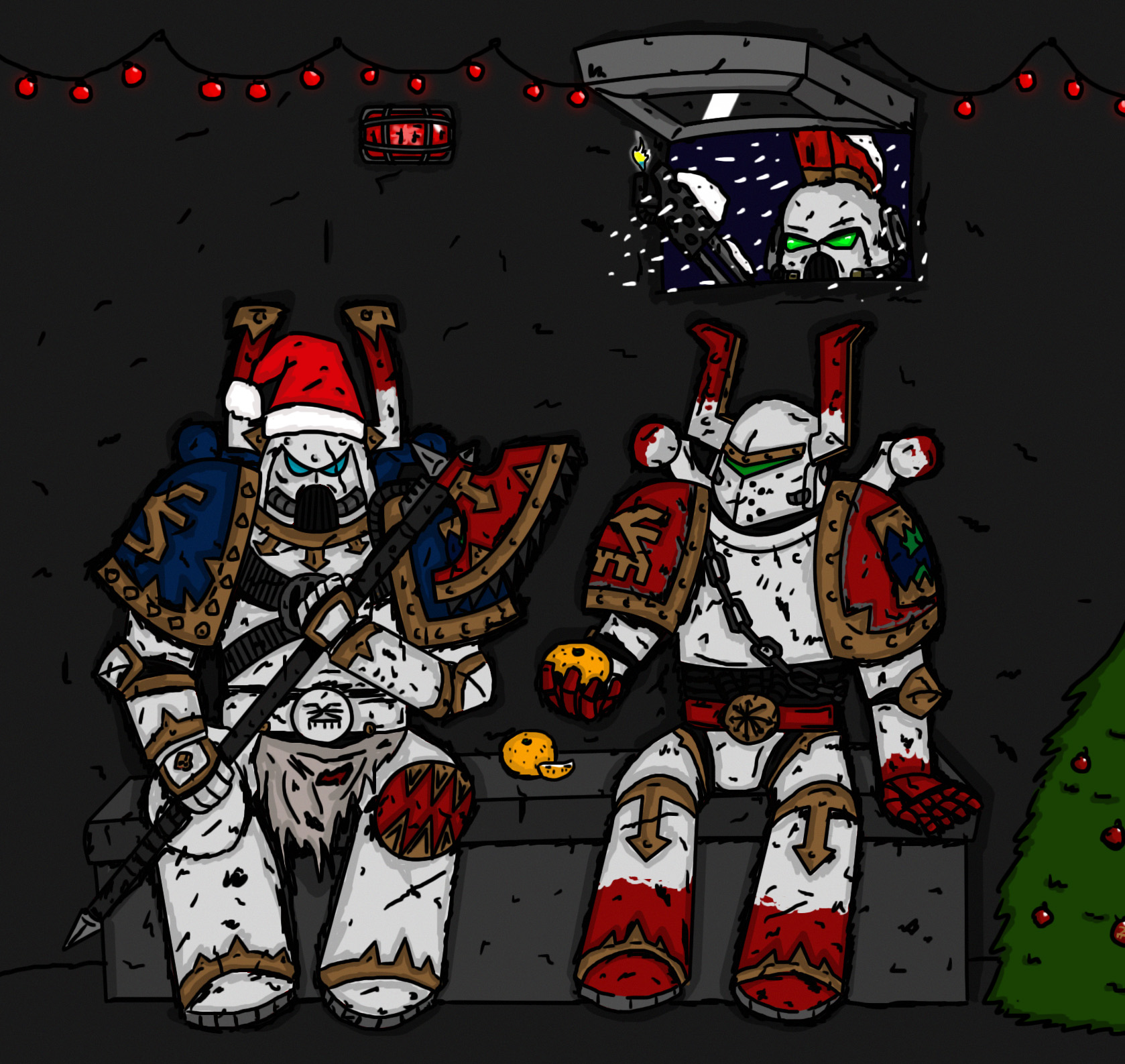 Ересь Хоруса в разгаре. На флагмане Детей Императора в центральной зале происходит оргия. Прямо на полу огромная куча совокупляющихся десантников. Стоны, объятья братские, полуметровые уды, малафья по стенам...