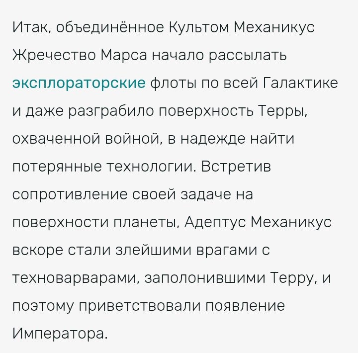 >>71621 (OP) Анон, который спрашивал про то, как люди изобрели поля геллера и вообще варп-движки, ты тут? Потому что вот тебе и ответ > As the Stone Men existed in a state of "half-life", they were unaffected by the Daemons of the Warp, something that made Warp Travel much easier for them. In time Mankind learned to place itself into the ships of the Stone Men, protected from the depredations of the Warp.[2]