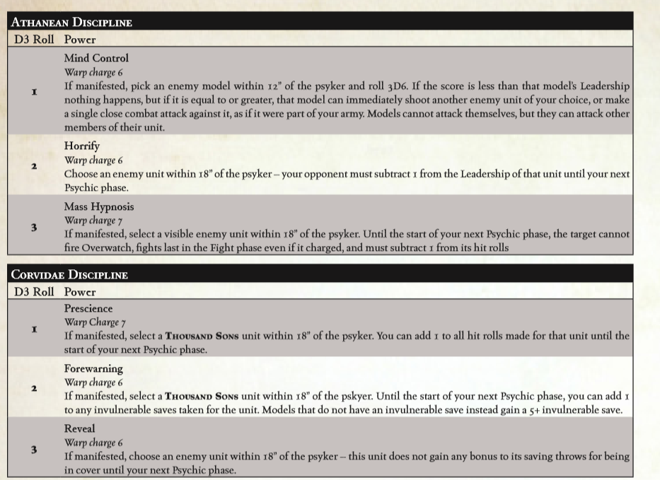 Что нам интересно: плюшки Амона на -1 к касту псякров в 18" и реролл колов на тухит, если не двигался, не действуют. А вот Кроль снижает его лидерство и психик тесты на 1 и заставляет ловить перила на каждый дубль. Алсо, ее нельзя выцеливать психосилами, так что Амону есть смысл брать только те силы, которые баффают его самого.
