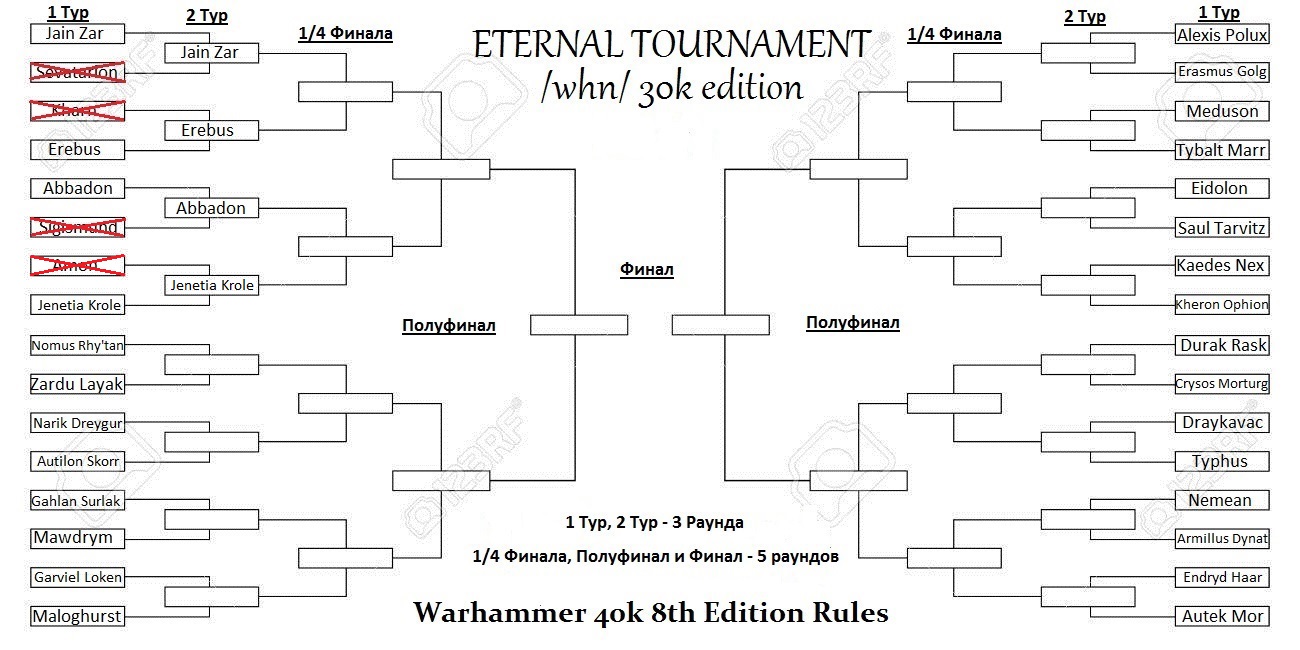 Этот турнир посвящён временам Ереси Хоруса, поэтому не удивляйтесь, если вдруг известный чемпион 40к окажется в 30к не самым сильным бойцом. Играем мы в правила 8 редакции, на которые некоторыми терпеливыми людьми были перенесены персонажи Ереси.