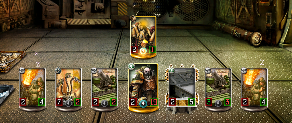 В новом бою, кстати, будет разумно предоставить Малогарсту пользоваться болт-пистолетом, так как он явно слабее Локена. Эффект знамени действует на Малогарста. Оба героя на 6 тухит генерят допатаки.