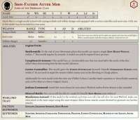 >>77982 Возьми профиль железного отца Фейрроса из железных рук. 5 мув, 3 ВС, 2 БС, 4 сила, 5 тафна, 7 вунд, 5 атак, 9 лидак, 2 сейв. Оружие Болт-пистолет пистолет 1 12 4 0 1 Гнев Горгона хеви 3 36 5 -2 2 Топор мили +3 -2 2 2 серворуки х2 -2 3, может делать не больше 1 атаки за ход каждой серворукой, при атаке вычитает 1 из броска тухит. Общее правило спейсмаринов - ангелы смерти - переброс лидака, шок ассолт - +1 атака если чарджил, делал героик или был почарджен, боевые доктрины - получает дополнительный +1 ап на хеви оружие и гранаты в первый раунд боя, на ассолтное и рапидное во второй, или во второй и третий, и на рукопашное и пистолеты в третий или четвертый и последующие. Правила - Сигнум - В начале шутинг фазы выбрать юнит железных рук в 3', этот юнит получает 2 бс до конца фазы Артифишер бионика - 5 фнп Раздает 5 инвуль пехоте железных рук в пределах 6 дюймов вокруг себя Благословление Омниссии - может восстановить 3 потерянных вунды технике железных рук в пределах 1 дюйма от него.