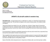 Он изложил данные, полученные от командования базы ВВС Неллис близ Лав-Вегаса. Согласно им, катастрофа произошла около 10:30 по местному времени (20:30 мск) во время учебных полетов над полигоном базы в штате Невада.