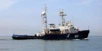 Так это же старый ржавый сраный буксир. Как уже заметили, вооруженный покрышками. Может там и не военные вовсе?