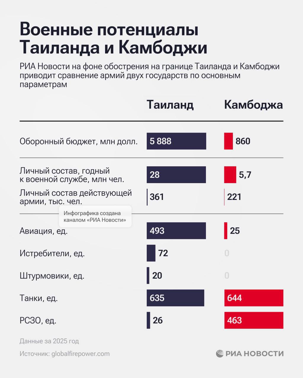 ◾️в одной из камбоджийских провинций погиб один мирный житель, ещё пять получили ранения. 1,5 тыс. семей эвакуированы, сообщили власти.