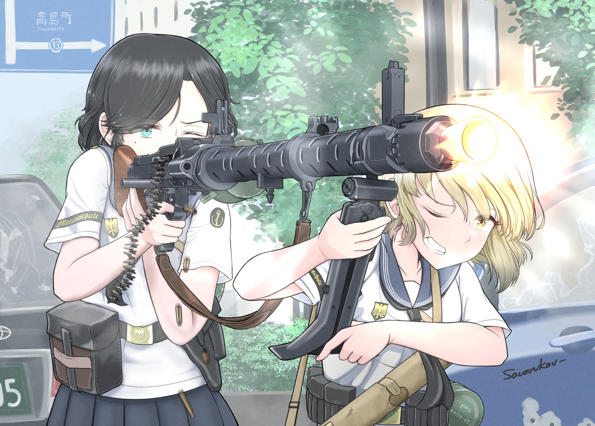 Решил нейросеткой погенерить тянок в форме. На первой пикче автомат получился всратым, да и тегам российскую форму я побоялся, но отсылка понятна. На третьей пикче нейронка не знает, как выглядит "Штрихтарн".