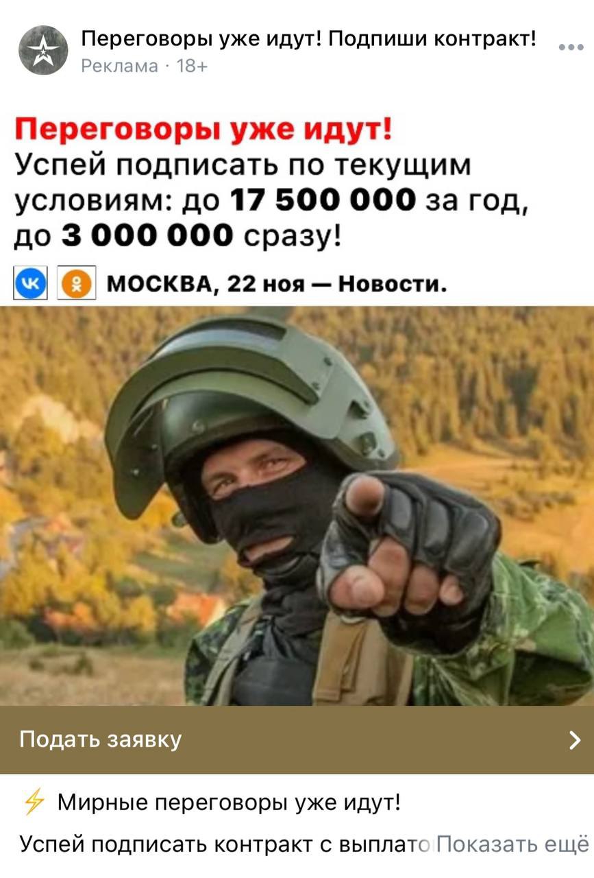 Куда пойти? Есть два стула, собственно заключение контракта на военную службу и в так называемый добробат. Лучше идти в добробат, там не платят региональных и МОшных миллионов за заключение контракта, проблемы с получением корочек убд и соответствующих льгот но зато ты свободный человек который служит только сколько написано в контракте https://rg.ru/documents/2022/11/08/document-federalnyjzakon419.html Заключая контракт на военную службы ты получаешь все эти два с чем то миллиона в Москве но служишь до смерти, или пока ногу руку не оторвало. Если хочется попасть в определенную воинскую часть или добробат то нужно в этой части запросить так называемое отношение, как получить и куда идти с ним спрашивай у вербовщика части или добробата, ну или иди на кпп части и спроси там как к ним попасть на службу. https://t.me/oxranahvk715 https://t.me/BTGR_NEVSKIY Москва больше всего платят https://доброволец.москва/ https://contract.mos.ru/ https://московскийполк.рф/ Кубань https://контракт23.рф/ Санкт-Петербург https://www.gov.spb.ru/contract/ Татарстан https://heroes-tatarstan.ru/ ХМАО https://voin86.ru/ Карачаево-Черкессия https://www.kchr.ru/svo/ Чтобы узнать подробности по выплатам можно загуглить собственно выплаты по регионам или позвонить напрямую в военкомат региона. Давайте очередной раз поговорим про деньги. Первое. С мобов и контрачей берут налог. Поэтому есть нефиговая разница между суммой до и после вычета. Вам по СМИ называют суммы ДО вычета, в целях заманухи и обманки. Мобилизованные в среднем получают около 170-180 000 рублей на руки. Это пехотинцы на разных должностях (от стрелков до пулемётчиков и командиров отделений). Артиллеристы, танкисты и разведчики получают около 190-210 000 рублей, но их меньше, чем пехоты. Связисты получают 186-200 000 рублей. Это мобилизованные, без учёта региональных выплат, как в Москве. Мобы-москвичи получают +50 000 рублей. В сумме около 220-245 000 (градиент от пехоты до арты и танкистов, которые зарабатывают больше других). Главное достоинство мобилизованных — в России они получаем ту же зарплату, что и в Зоне СВО. В отпуске, находясь в госпитале. Это удобно. Например, тебя ранило, с тебя сняли форму, пропитанную кровью и грязью. Тебе нужна новая при возвращении в строй. Берёшь и покупаешь. И заодно про*ную экипировку, аптечку и прочее, что растерял из-за ранения.