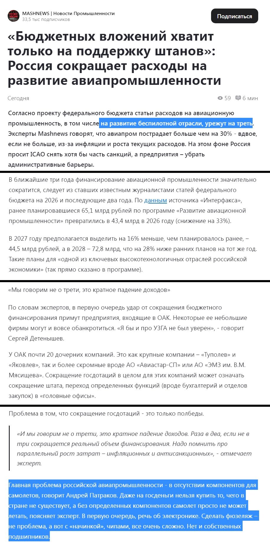 >>10185913 Деньги есть - мозгов нет. Программу развития авиации с гигантским финансированием в 2022 приняли - где результаты? Планы поменяли, уменьшили - где результаты? Привыкли пиздеть и сроки переносить. Не знали, что ли, что проблемы не позволят выполнить обещания? Знали, но пиздели. Поэтому деньги и отобрали. Год или два назад мантуров пиздел, что можно, конечно, принять огромную программу по полному импорто-независимому производству беспилотников, но хуё-моё, но туда-сюда, не хочу я, отъебитесь. Ну вот и результат.