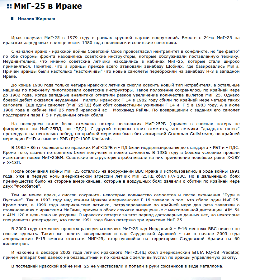 >В поздних версиях пофиксили. МиГ-35 полноценный МФИ уже. Ага в другой эпохе. Но в этой эпохе смотрим на сушки и на сидящий в ссаном углу рск миг, который исправил проблемы через 40 лет и только. 6 бортов, на све не засветился, за границей даже кндр и иранцам не нужен. Чтоб отмыть репутацию название с 29 на 35 поменяли, ага только смыть слой кала забыли. Рск миг полная залупа, смогшая только 6 никому не нужных леталд сделать и переделать перехватчик в носитель 1 ракеты.