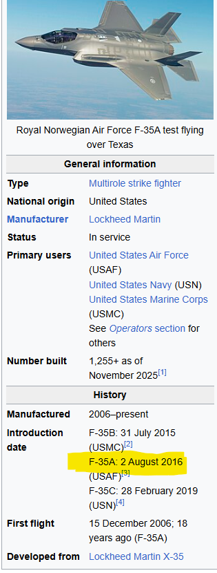 Хм, оказывается эта пикча впервые всплыла в интернете аж 13 лет назад (мб даже раньше), до официального принятия самолета на вооружение в 2016, а далбаеб с ней носится в 2025. Почему я не удивлен? Наверное, в манямирке далбаеба визжащего на ультразвуке уже выпущенные самолеты не получают апгрейды софта или вообще каких-либо доработок. Ну ладно, на то он и далбаеб