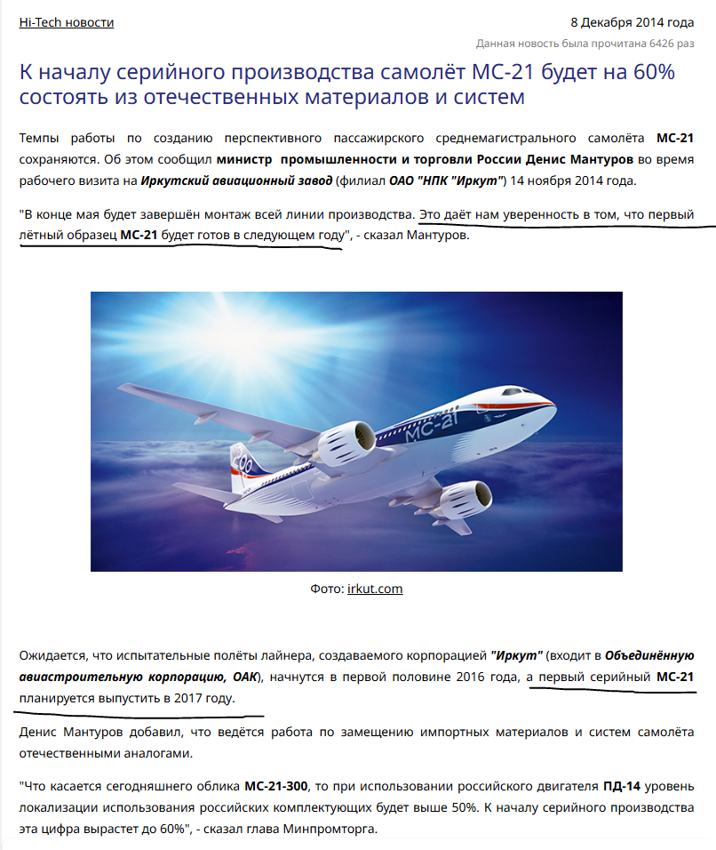 Давай я тебе отвечу цифрами, а ты анус поставишь, что эти цифры будут достигнуты? > В "Ростехе", который объединяет предприятия авиапрома, "Интерфаксу" говорили, что к 2030 году планируется поставить на рынок с использованием господдержки более 450 самолетов и 460 вертолетов.