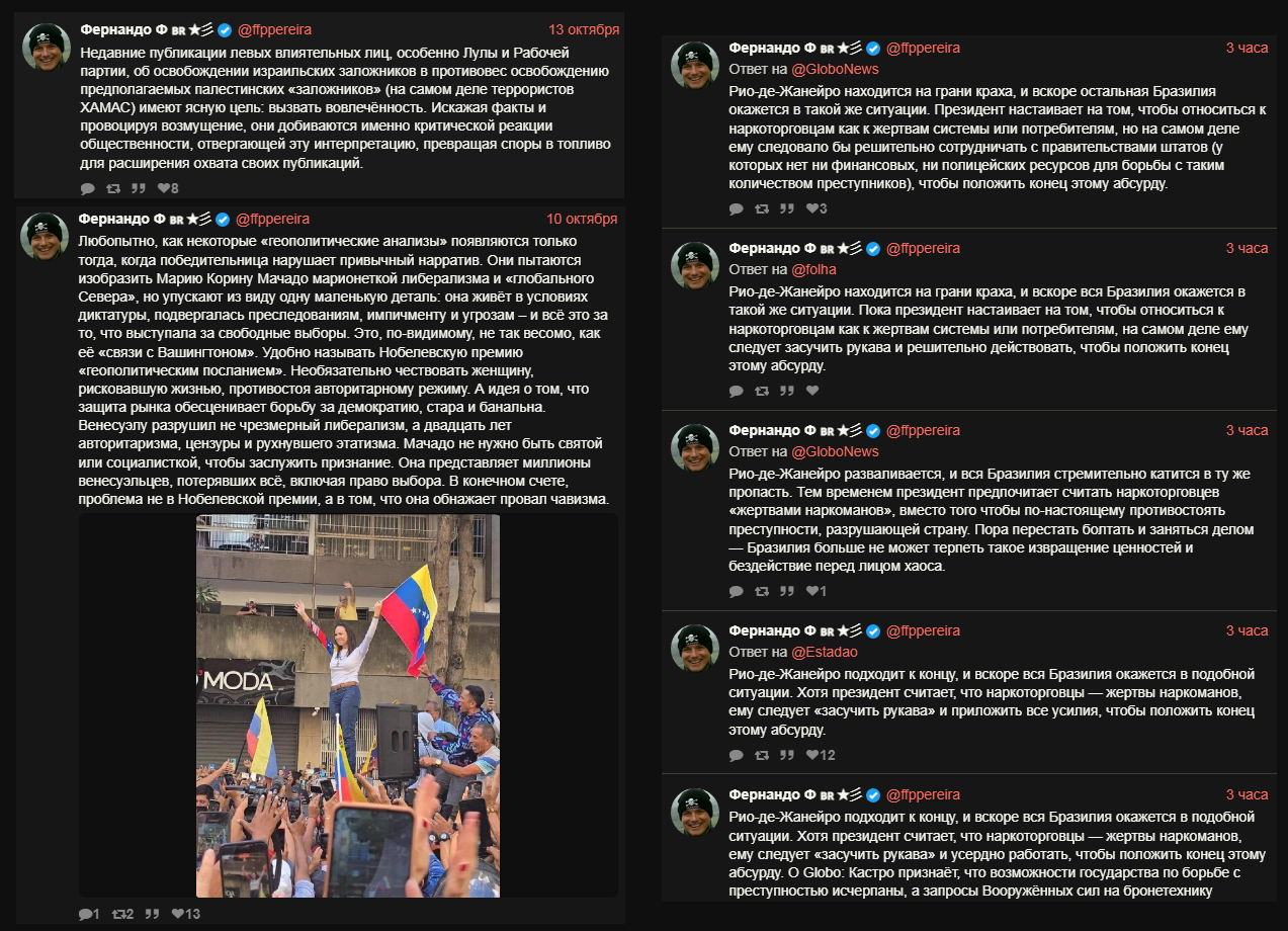 Почекал сритор, опять вся соросявая ботоферма яростно отхрюкивает "пора на бунд" и "Долой Лулу, долой Брикс" лол, неиронично "Трамп введи войска". Смешнее, что еще день назад они хуярили посты про плохую Венесуэлу и Колумбию. и.. молились за Израиль, что уже давно является маркером слаженной организованной работе по отхрюку