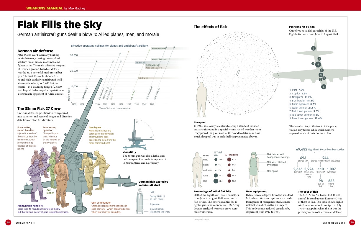 Немцы исследовали эффективность зенитного огня против бомбардировщиков и пришли к выводу, что вероятность осколочного поражения равна вероятности прямого попадания в бомбардировщик. С увеличением высоты полёта бомбардировщиков общая эффективность огня падала. Таким образом, было решено изобрести упрощённый снаряд без необходимости настройки взрывателя (который был настроен на max ceiling в целях избегания попадания по своим). Это увеличило как скорострельность огня, так почти вдвое увеличило эффективность зенитного огня. Снаряды с настраиваемой задержкой равной высоте не встречались в 45 году.