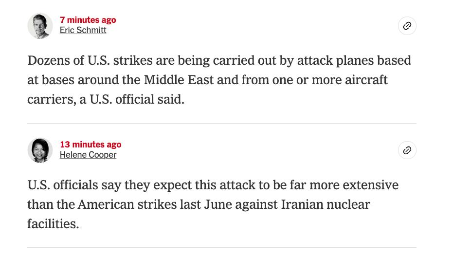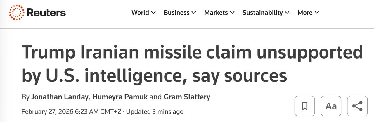 Издание пишет, что в течение примерно 24 часов будет завершено развертывание сил США в регионе Ближнего Востока, с этого момента атака на Иран будет возможна в любой момент.