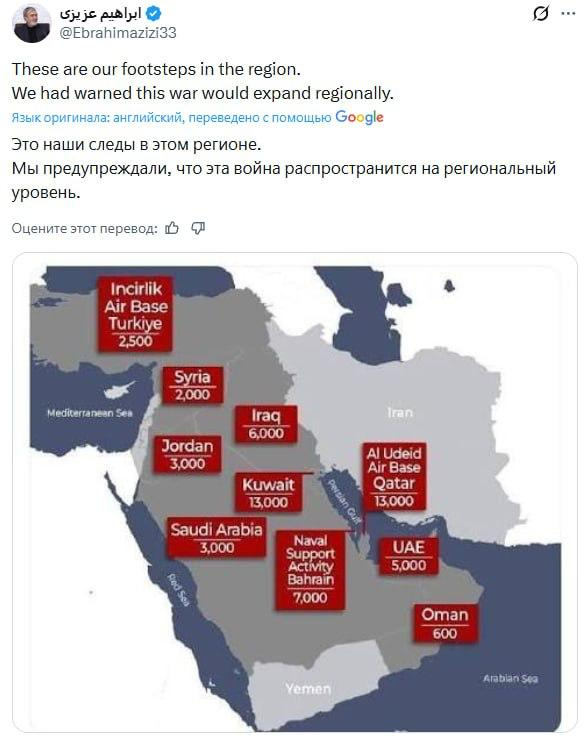 🚫Первая линия фронта проходит именно там. Если США окажутся втянутыми в этом районе, их положение станет крайне сложным. Они вовсе не ожидали, что у Ирана есть необходимые военно-воздушные силы и системы ПВО для ведения боя на этой первой линии.