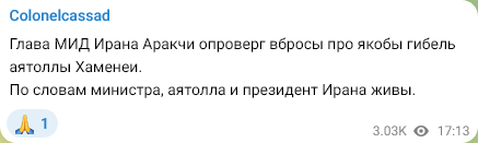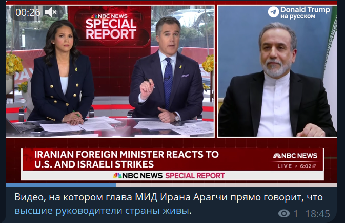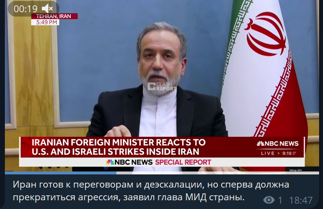Видео, на котором глава МИД Ирана Арагчи прямо говорит, что высшие руководители страны живы