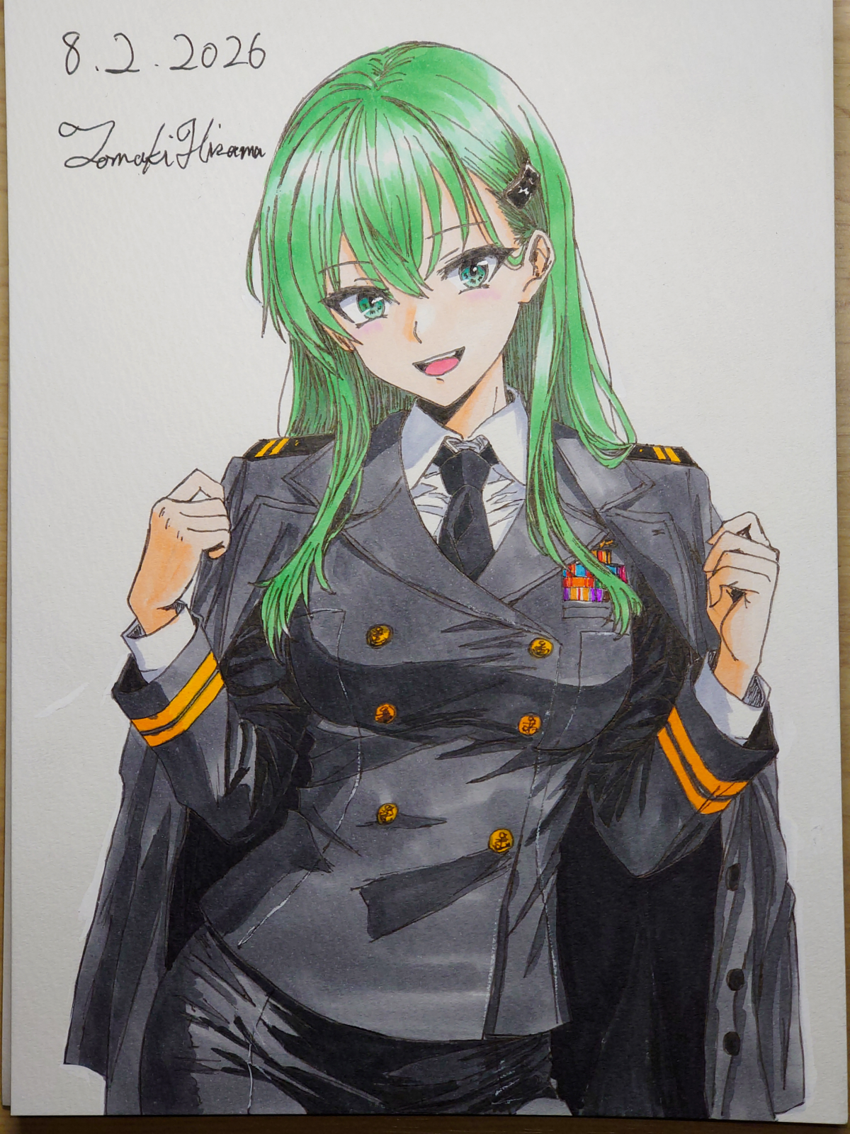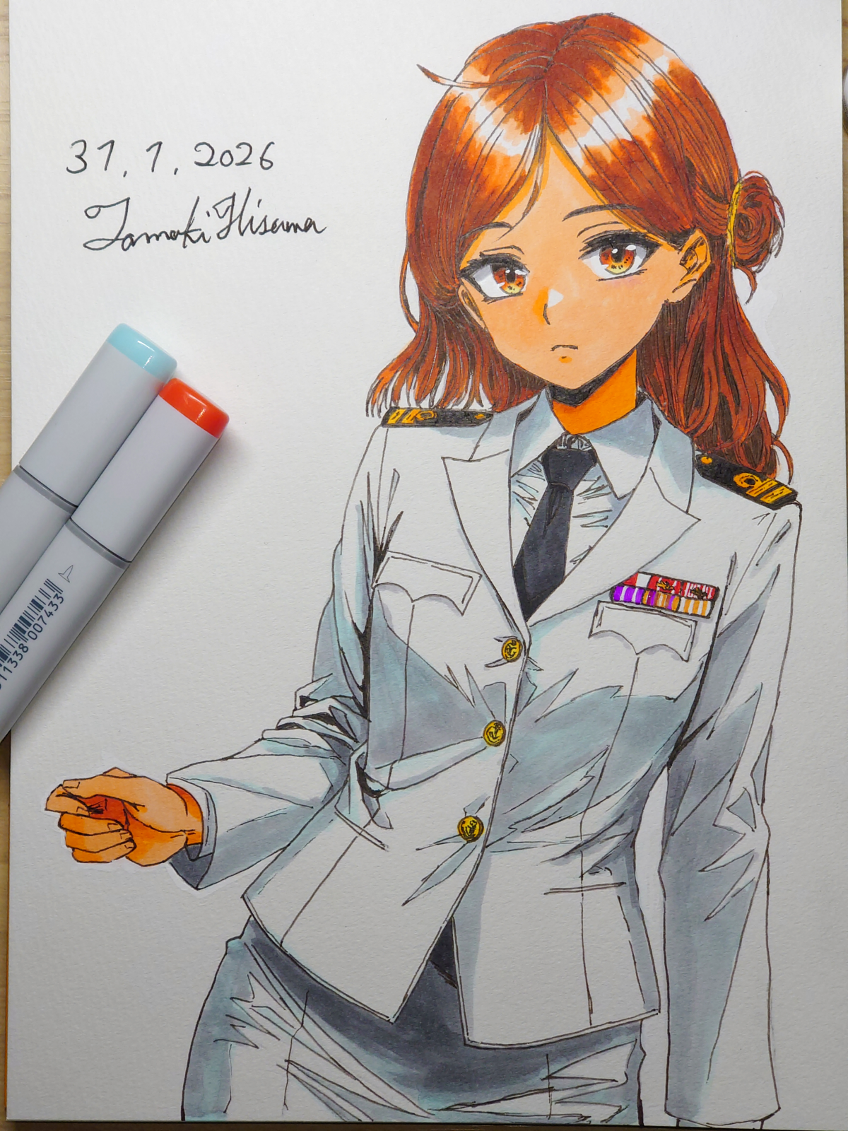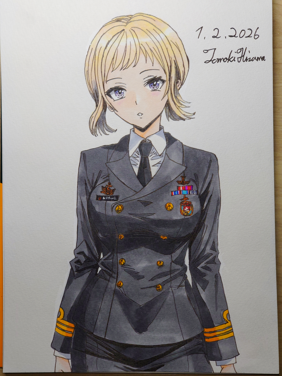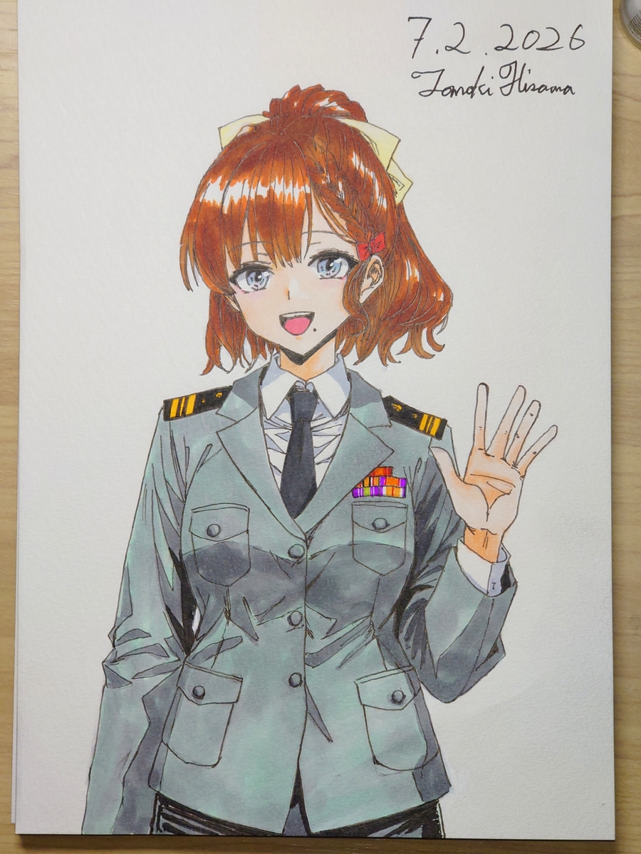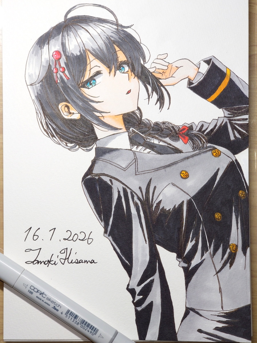 > Пик 2 Сигурэ из KanColle в форме офицера морских сил самообороны. То ли лейтенант, то ли мичман (одна полоска на рукаве, которая отличается лишь толщиной). Склоняюсь, что это всё же мичман. Тот же автор (его рисунки на бумаге лучше, чем в цифре, однако).