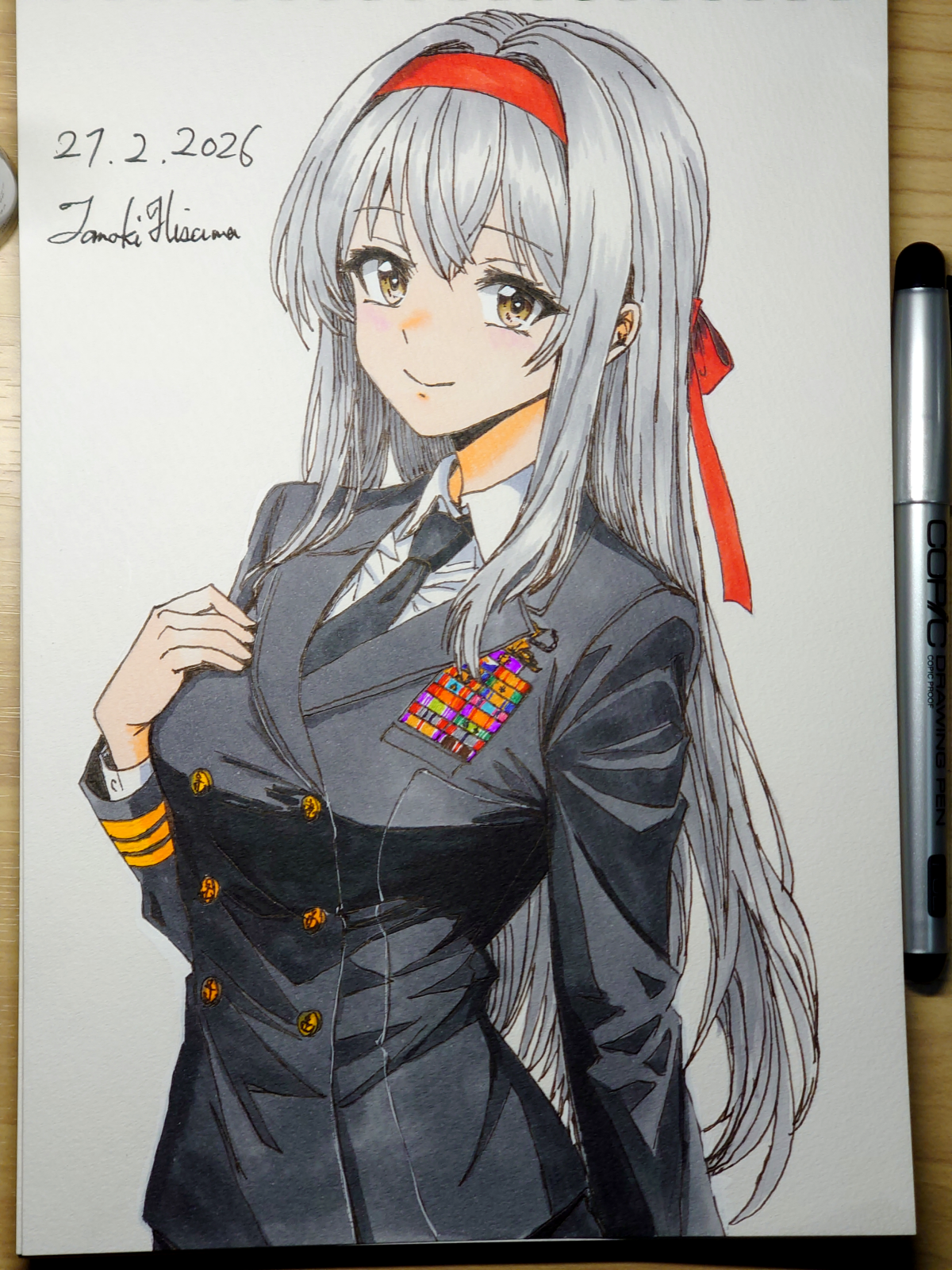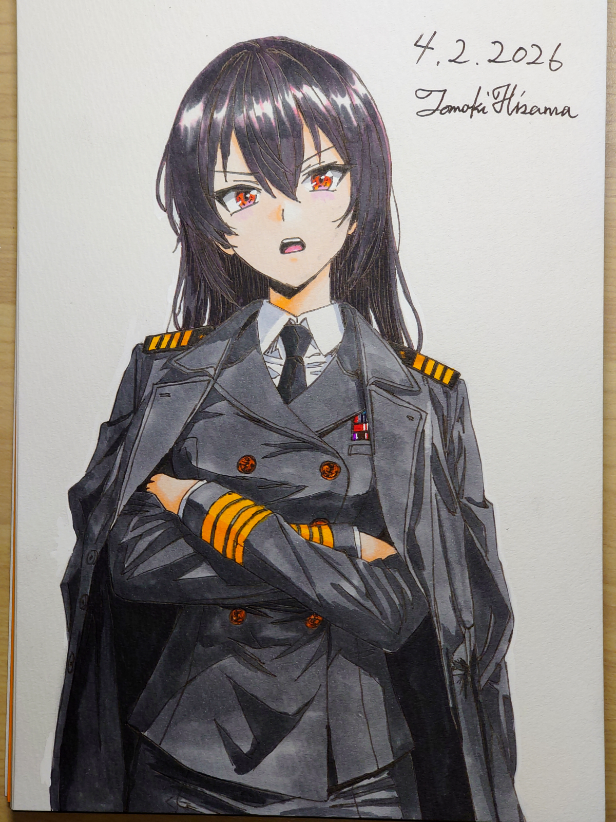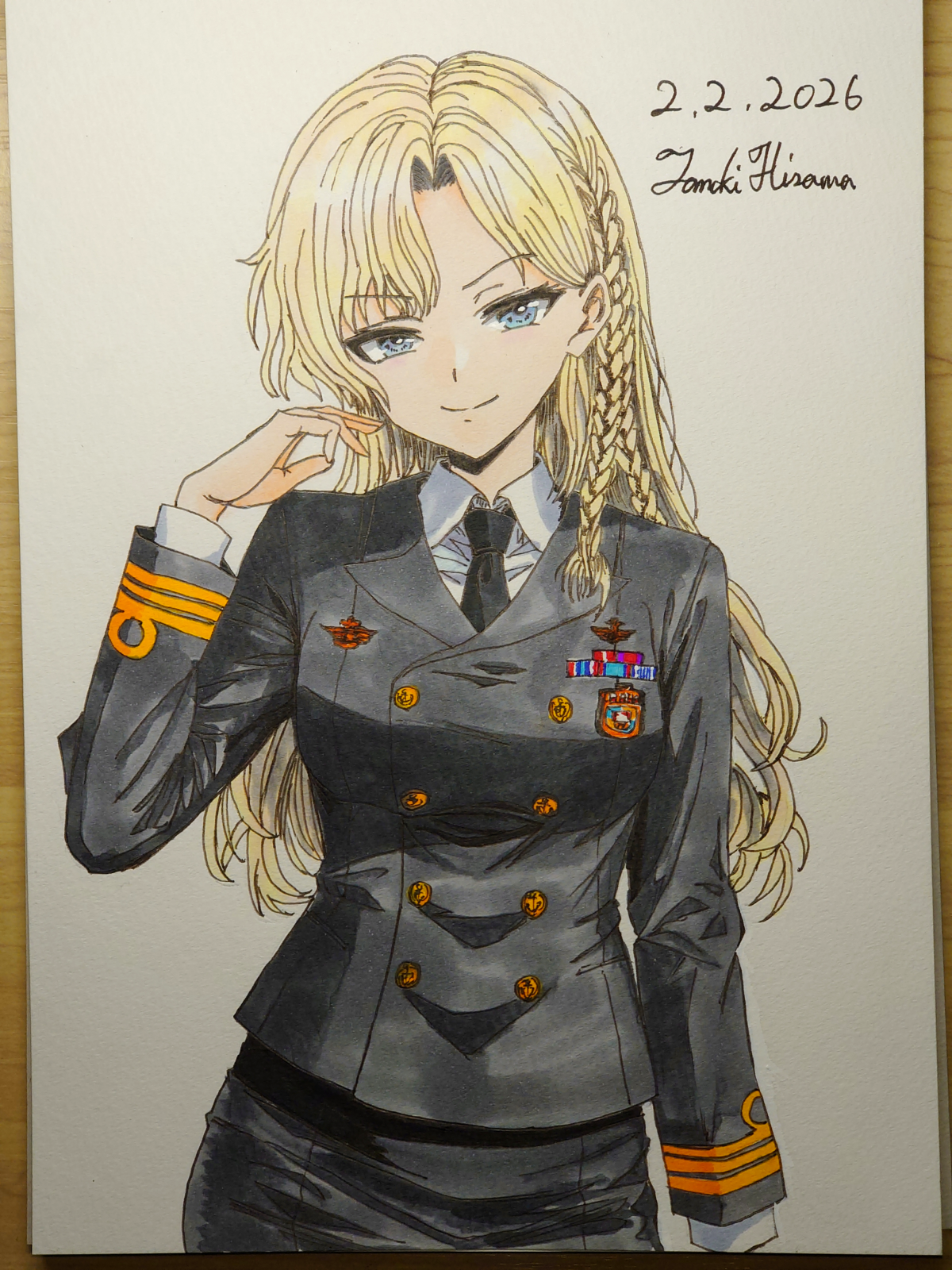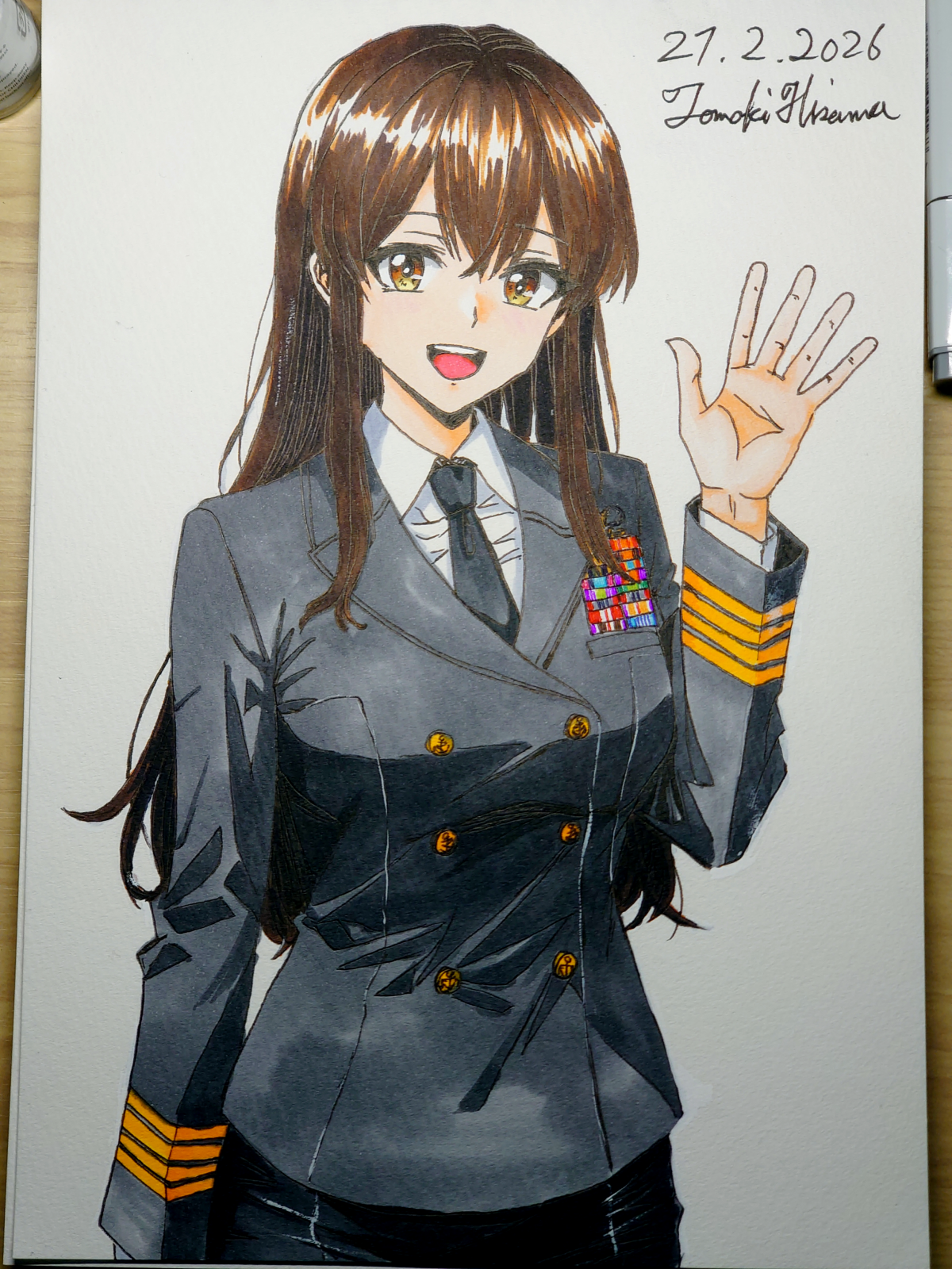 > Пик 2 Сигурэ из KanColle в форме офицера морских сил самообороны. То ли лейтенант, то ли мичман (одна полоска на рукаве, которая отличается лишь толщиной). Склоняюсь, что это всё же мичман. Тот же автор (его рисунки на бумаге лучше, чем в цифре, однако).