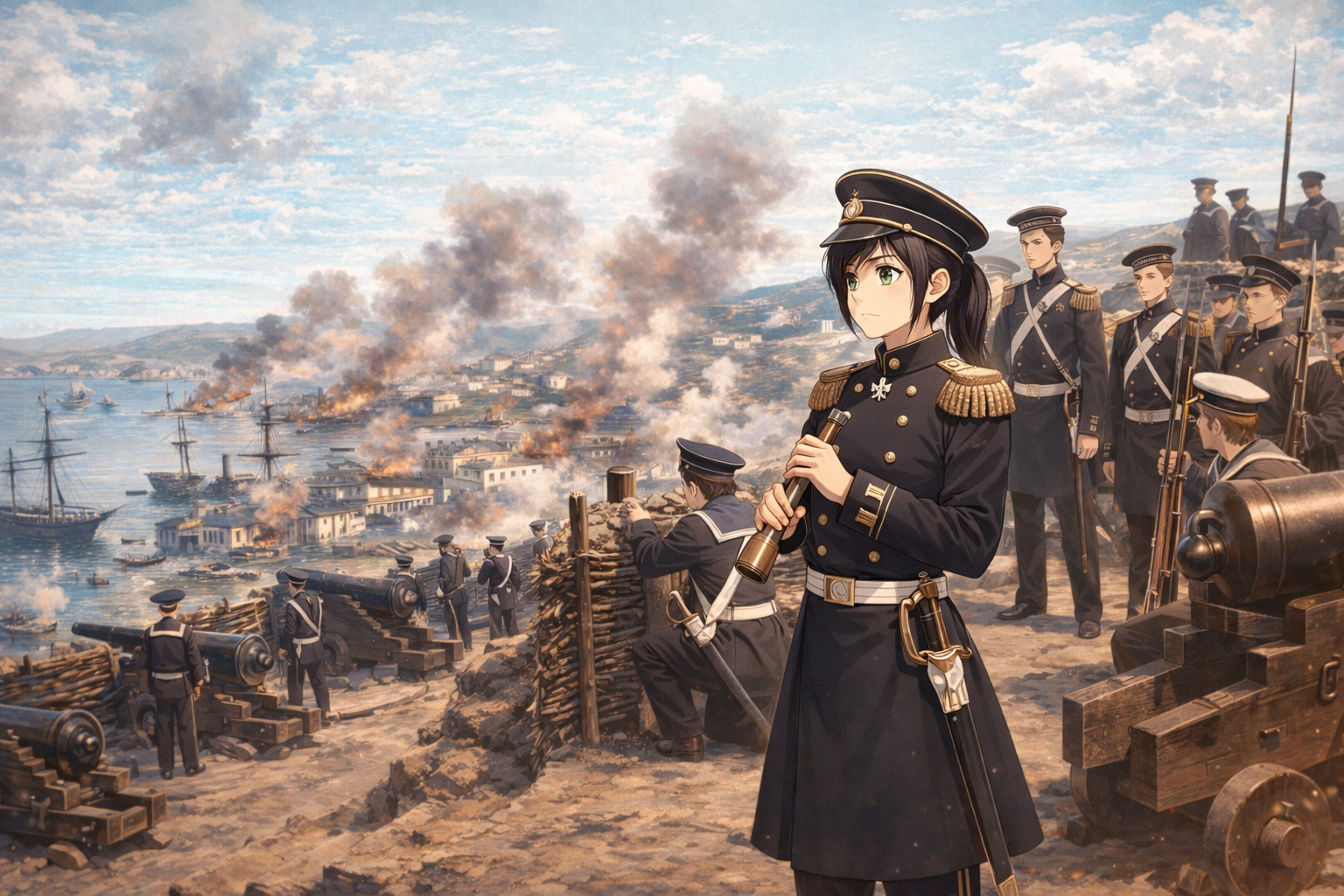> Пик 4 Тянка в форме японской императорской армии времён Мэйдзи (подпрапорщик). В руках у неё винтовка Мурата. Автор: https://www.pixiv.net/en/users/27610182
