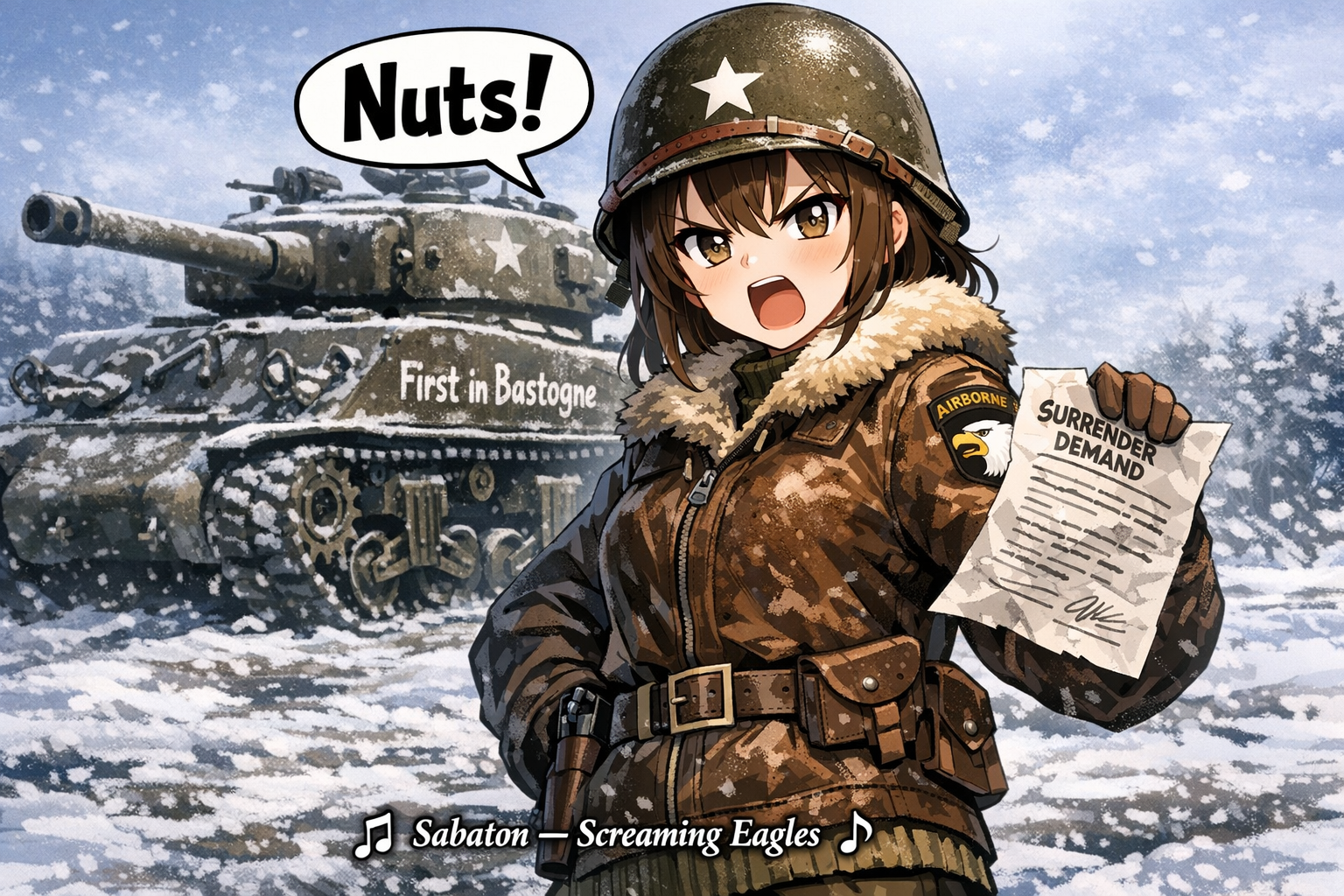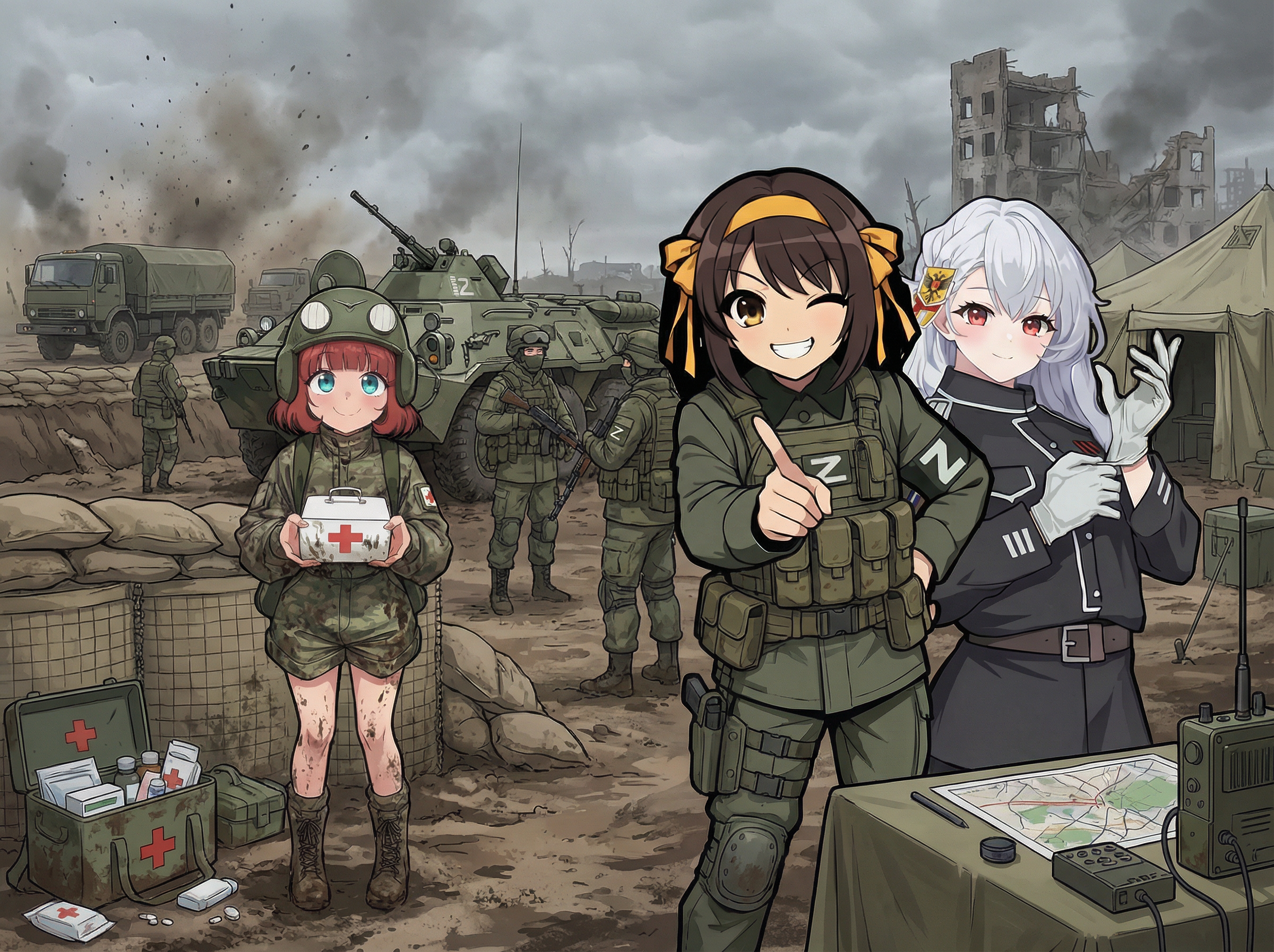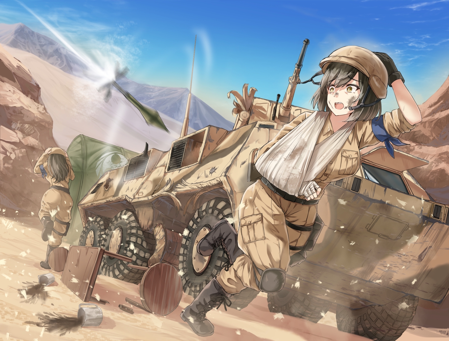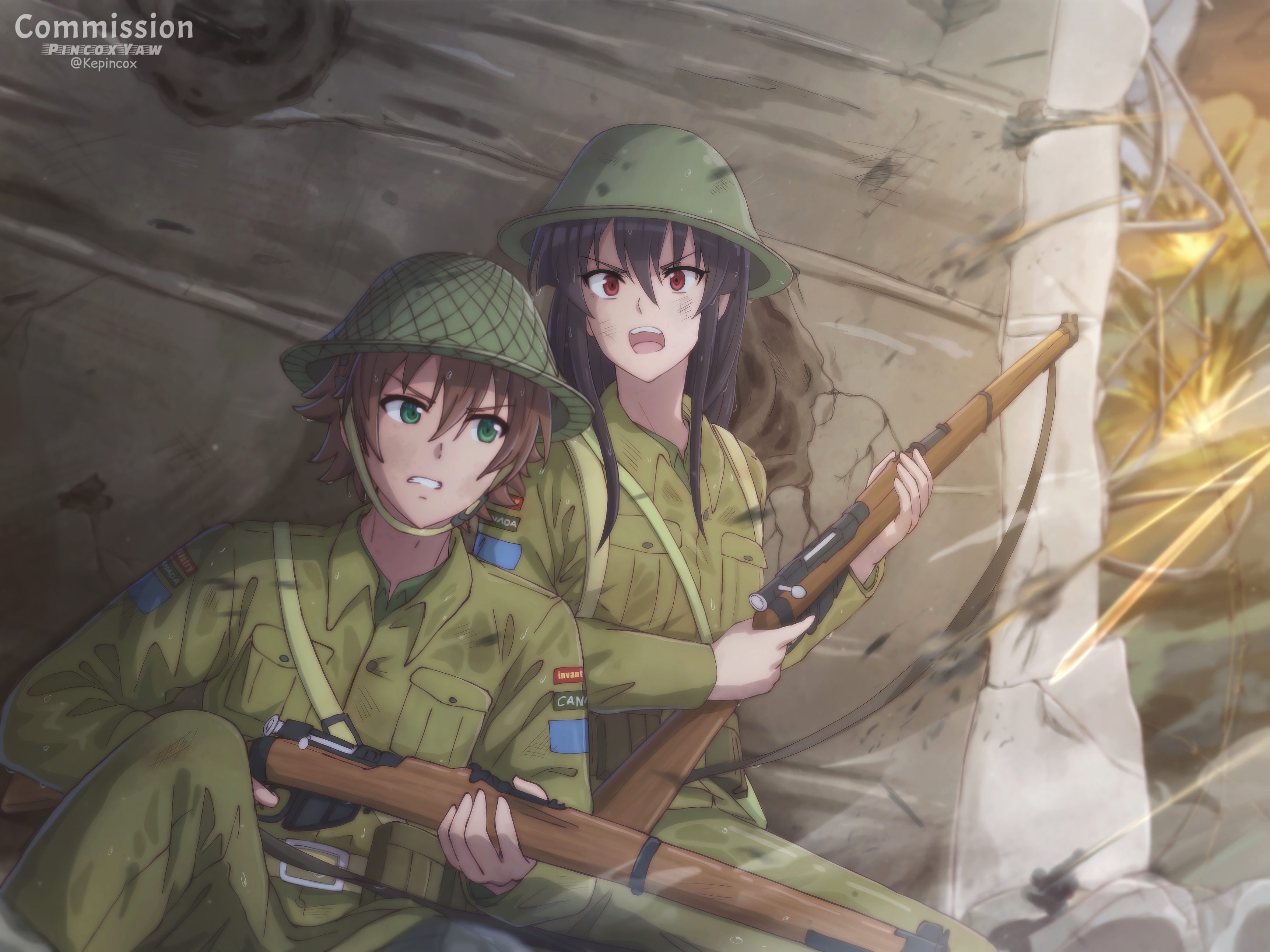> Пик 4 Kohima, 1944 ЧатГПТ говорит, что у тянки на шляпе эмблема Australian Army Ordnance Corps, но чёт хз. Совсем другая гуглится. Автор: https://www.pixiv.net/en/users/78305394