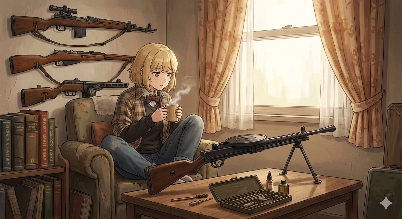 > Пик 2 Тяночка в матроске лежит на немецкой плащ-палатке, а рядом с нею пулемёт MG-42 и две яйцевидные гранаты. Намёк на хуй? Автор: https://x.com/m1928tommygun
