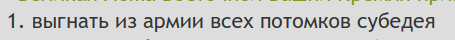 >>6965463 (OP) >Великая Ложа Восточной Башни Кремля признала тебя воплощением Субэдэя, лол. 1. выгнать из армии всех потомков субедея 2. призывать буквально всех с 12 до 60 лет на сборы, раз в 4-8 лет, не желающие собираться, но подходящие по здоровью, могут платить специальный налог 3. в частях составить инвентарные правила должны быть: гигиена, еда, обмундирование, обучение, экзамены кто не может получить хорошую оценку на экзамене/контрольной идёт дополнительно доучиваться по теме которую не понял 4. высшее образование = офицер, нет в/о = солдат, за в/о считать таковое только если оно получено сразу после школы на дневном отделении государственного ВУЗа, высшие офицеры обязаны иметь профильное образование, низшие офицеры обязаны сдать экзамен на военной кафедре 5. офицеров обязать посещать ателье чтобы парадная форма лучше сидела рядовых ательер части так же должен осматривать не за долго после после получения ими формы, чтобы определить подходит она функционально солдату или нет, особенно обувь так же должны выделятся средства для нищенствующих офицеров, чтобы они всегда имели возможность прилично выглядеть, никогда даже не думали о том, чтобы побираться, и имели возможность периодически съездить погреть кости в тёплом санатории в приличествующей высококультурной, пусть бы даже и скромной, обстановке 6. люди, получавшие какие-либо преференции от армии, но отказывающиеся выполнять боевые задачи, получают счёт на всё, что армия на них потратила, плюс счёт на дополнительные расходы, понесённые в результате их отказа, 90% любых их, любых их наследников и всех выгодополучателей ситуации будет удерживаться вплоть до полной выплаты долга 7. ввести русские национальные военные части, запретить нерусские национальные военные части 8. ЧВК применять только как трудовую армию в условиях повышеного риска для жизни по сравнению с обычной гражданской работой, подготавливать зеков для работы на техние и учить их её чинить, чтобы быстро выполняли заказы на земляные работы от стройбата, и держали технику в порядке, никаких освобождений от уголовки при этом, но большая денежная премия, и запись в дело, так что если человек не злостный убийца, а какой-нибудь ДТПшник, то на основании этого он вполне может получить УДО, а если и злостный убийца, то мог бы расчитывать на смягчение режима содержания и возможность траты премии на обустройство в месте содержания 9. активно разлечать ордена и медали все воинские ордена обязаны регуляно собираться на собрания ордена, куда должны допускаться все члены ордена каждый орден должен иметь орденский устав если таковых нет, то считать орден прекратившим существование, либо медалью