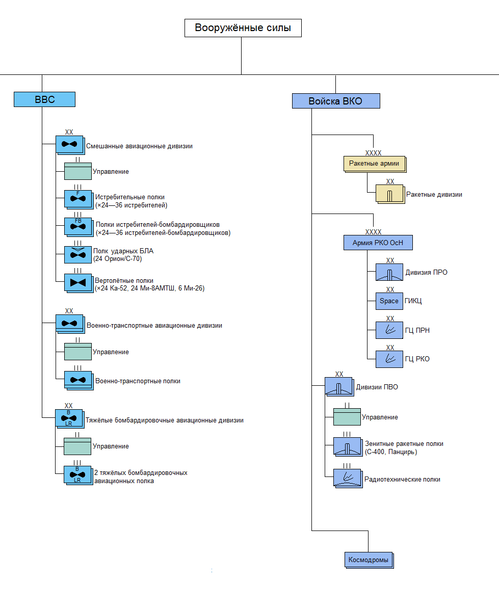 И не будет ломать управление видами вооружённых сил, как нынешняя. В ней могут быть представлены и ВКС, и ВМФ, и сухопутные войска. Офицеры ОСК должны в мирное время меняться по ротации, приходя в него из ВМФ, ВКС, штаба округа, и возвращаясь обратно через какое-то время – это позволит иметь хорошее взаимопонимание между ОСК и теми объединениями, которые могут быть включены в его состав. И командующего ОСК можно будет назначить «под задачу». Идёт речь об отражении воздушной наступательной операции противника – и наш командующий из ВКС, а ГШ направляет ему в усиление дополнительные авиационные части. Есть угроза с моря? Ставим командующим адмирала. Двигаем наши механизированные легионы в самое сердце врага по земле? На должность заступает генерал в зелёной форме. Всё логично и правильно. Такой штаб даже с ТВД можно забрать, если он там не нужен и усилить им опасное направление – штабы на войне ох как нужны, особенно «сколоченные» и опытные.