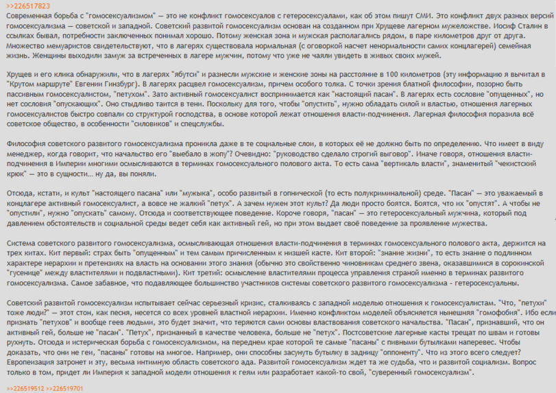 В-пятых, я как раз не особо кровожаден и предлагал инфоцыган/соевых всего лишь отправить очки мыть и плац мести именно как альтернативщиков, не надевая на них погоны, пользы принесут намного больше и их жизни ничего угрожать не будет. А вот выскопоставленные виновники (да и откровенные уёбки есть и среди меньших чинов и званий) пойдут в штрафбаты, их будут подгонять в бой заградотряды из омежек, которых чморили в школе/на срочке (хотя омежек скорее во ФСИН набрал бы, заградотрядам и полноценно воевать приходилось).