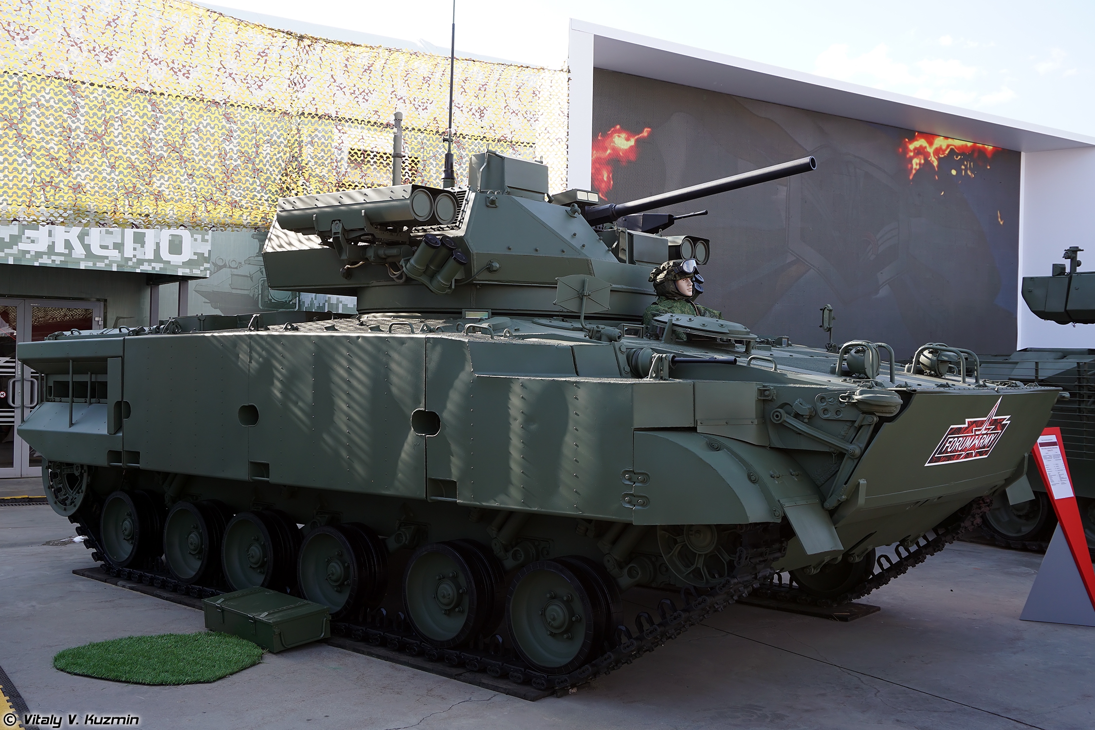 А так, серийных тяжелых бмп нет вообще ни у кого кроме израиля. Из танков их пробовали переделывать, получалась хуета. На Армате вот захуячили ебанутое решение с разворотом корпуса и клювом вместо влд.