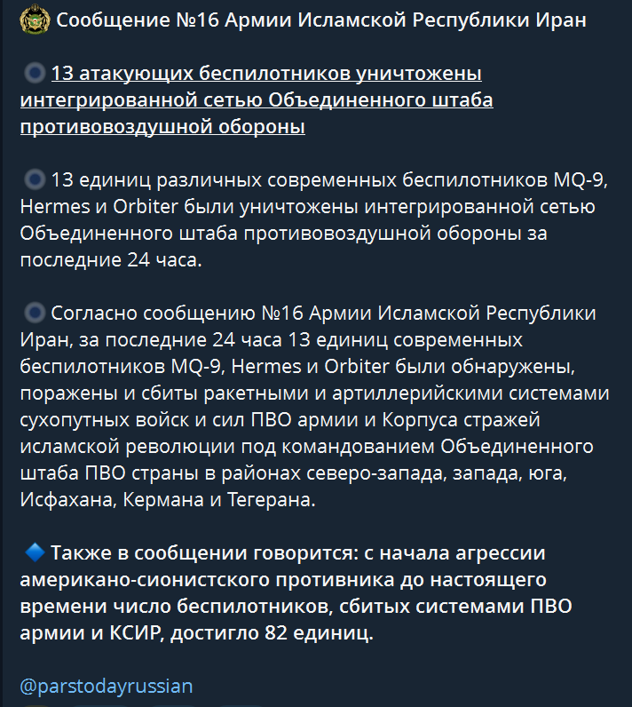 >Операция Ирана против США и Израиля получила название "Истинное Обещание 4"
