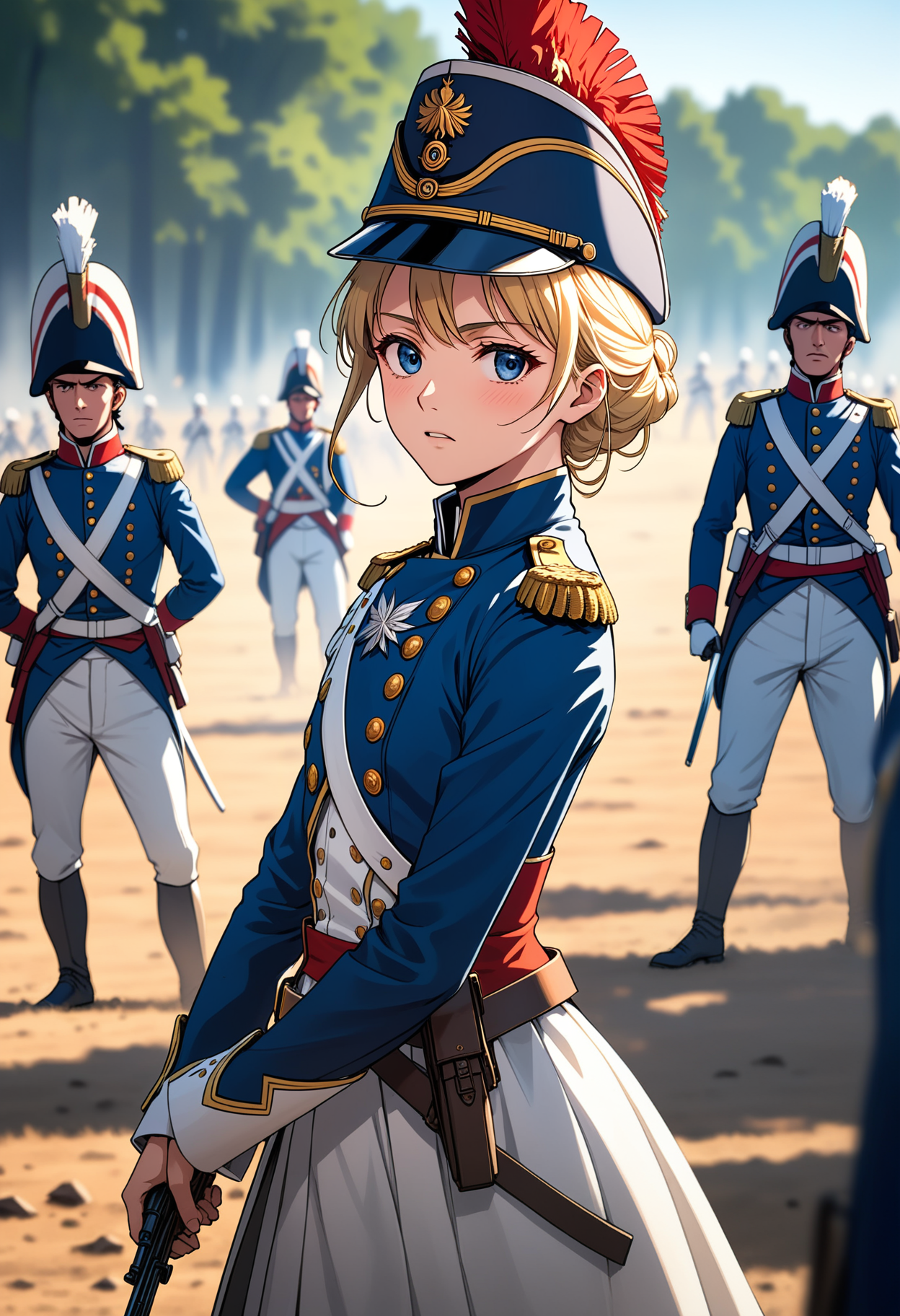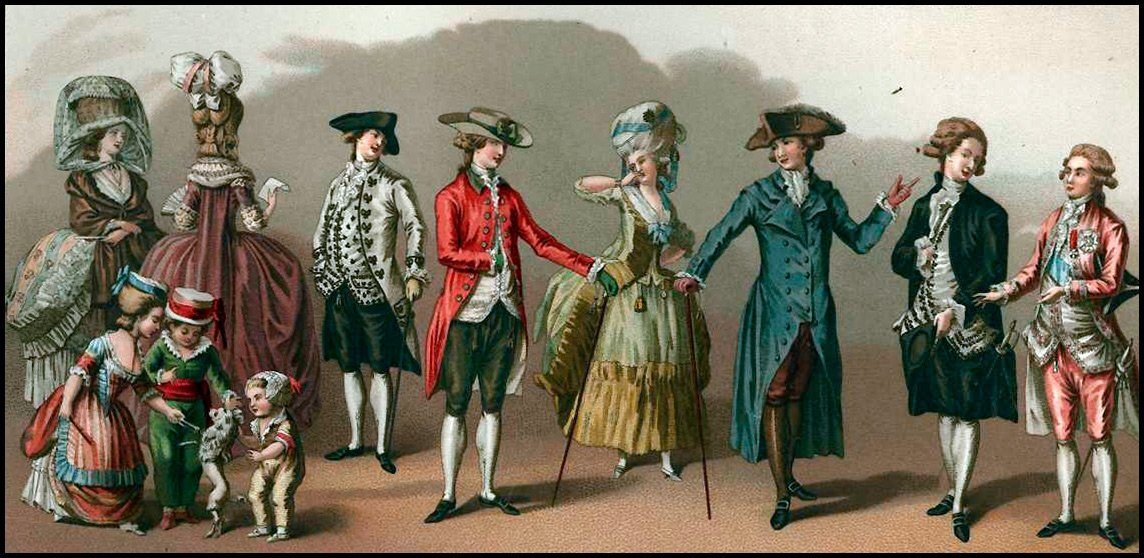 > Во время наполеоники Во времена ВФР гражданский мужской костюм как раз начинает сбрасывать кружева и золотое шитьё, а на военной форме это задержалось до середины XIX века где-то.