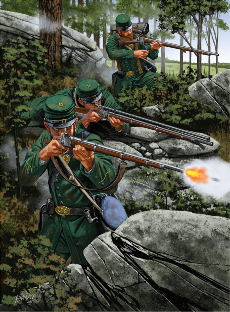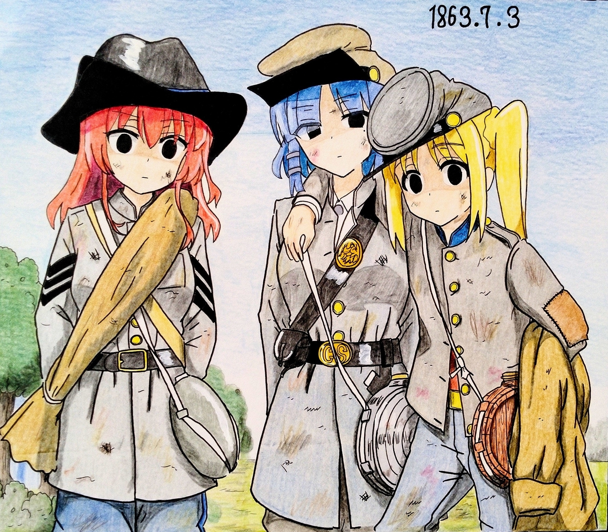 Эта работа основана на фотографии солдат Конфедерации, захваченных в Геттисберге. Все трое солдат изображены как члены бригады Армистеда (пять пехотных полков Конфедерации).