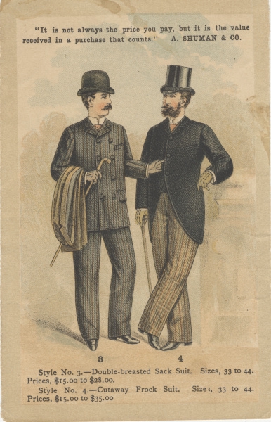 А в XIX веке форма становится значительно проще, хотя уже автоматические ткацкие станки были, а со второй половины века и швейные машинки потихоньку становятся массовыми — собственно, во времена граждан_очки в США форма уже не очень дорогой была. Но вот обувь долгое время была очень дорогой — это сейчас есть китайговно, а в то время были ботинки / сапоги из настоящей кожи.