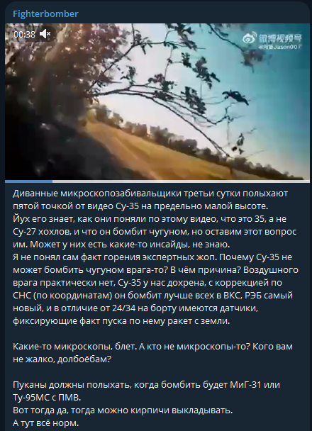 >разок обменялись с Су-35 УРВВ, оба разошлись и чутка вспотев вернулись на аэродромы? один су-35 был потерян.