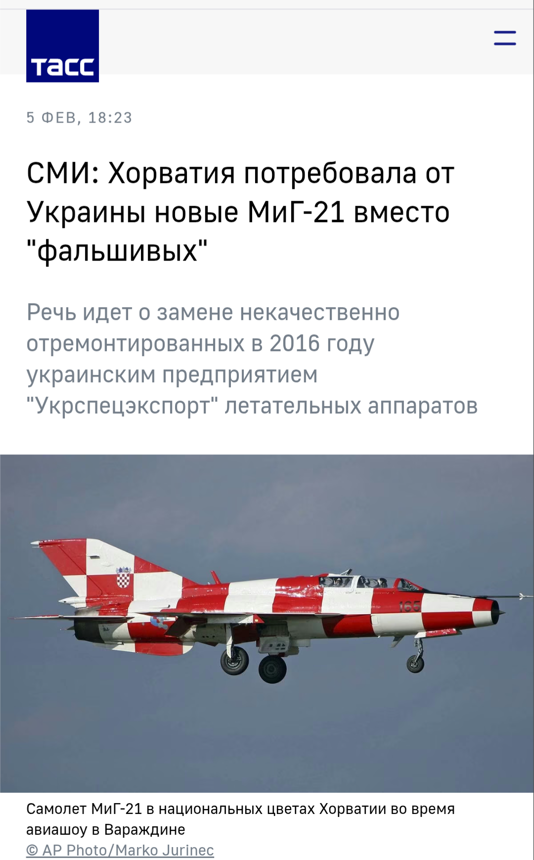 >>9948475 >По заявлениям РФ сбивала ракетами самолёты По заявлениям Украины - Призрак Киева разьебал половину российской авиации, прямо пруфы не искал видел только видос как ракеты пускают прямо из видоса как самолет летает над Киевом >>9948475 >История с Хорватскими МиГами В Украине Наебали ™️ Классика. Сейчас, как пошла социальная и промышленная интеграция с европой, понемногу от таких ситуаций отходят. Но процесс долгий, на десятилетия. Впрочем не очень хочу удаляться от темы.