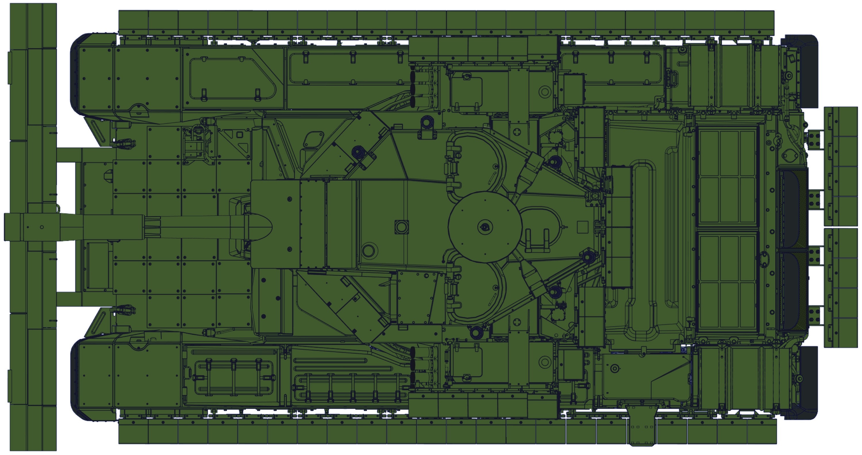 В итоге там всрали нахрен ненужную гитару, которая добавляет массу и габариты МТО, вместо того чтобы сделать одну единственную коробку. Забавно как все это сочетается с манямирком фанатов советской танковой школы, где дрочили на максимальное снижение массы. А вот у барена все бальшое и тяжелае и мто занимает половину корпуса танка, а вот тут оказалось норм 50 лет можно выпускать)) лицемерие во все поля