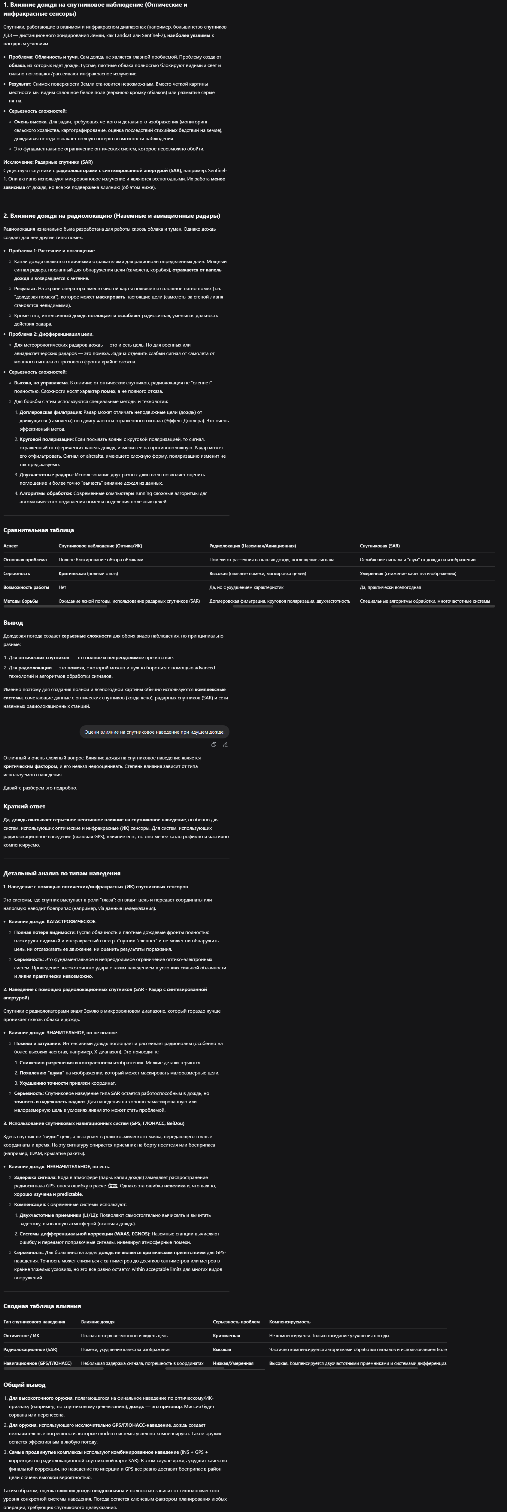 Влажность это проблемы радиолокации, наведения, ориентирования, коррозионностойкой, территориального и пространственного передвижения техники и людей, обороноустройства и строительства, хранения, необходимости сухого применения механизмов и узлов, устройства электрической энергетики и даже настроения психики человека. Это можно использовать ситуационно, прогностически и в долгую, через расходы. Осадочная погода может стать эффективным преимуществом. Но стоит осознать, что в зоне использования этого преимущества находимся и мы.