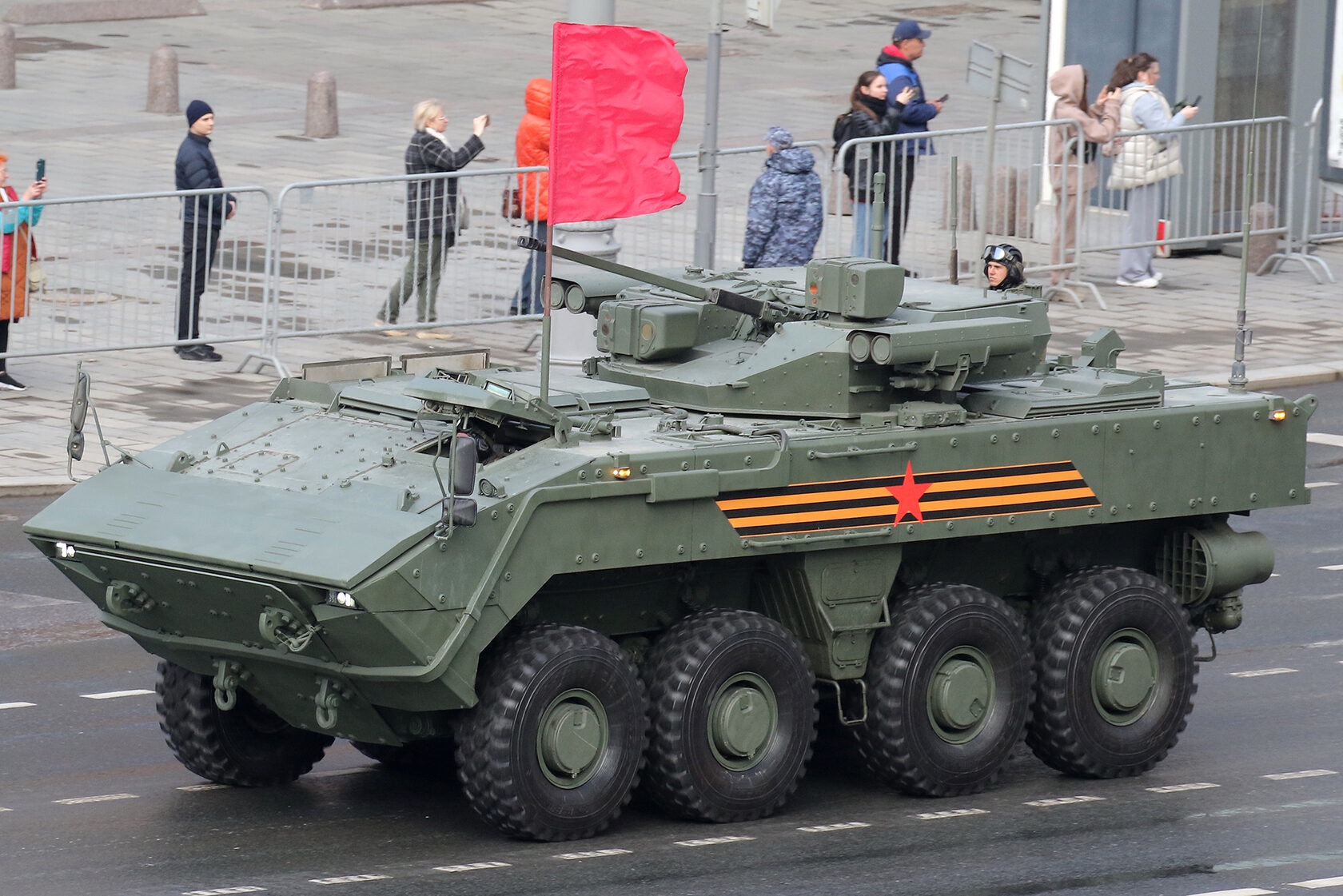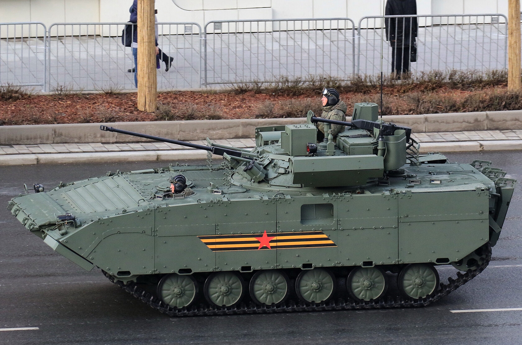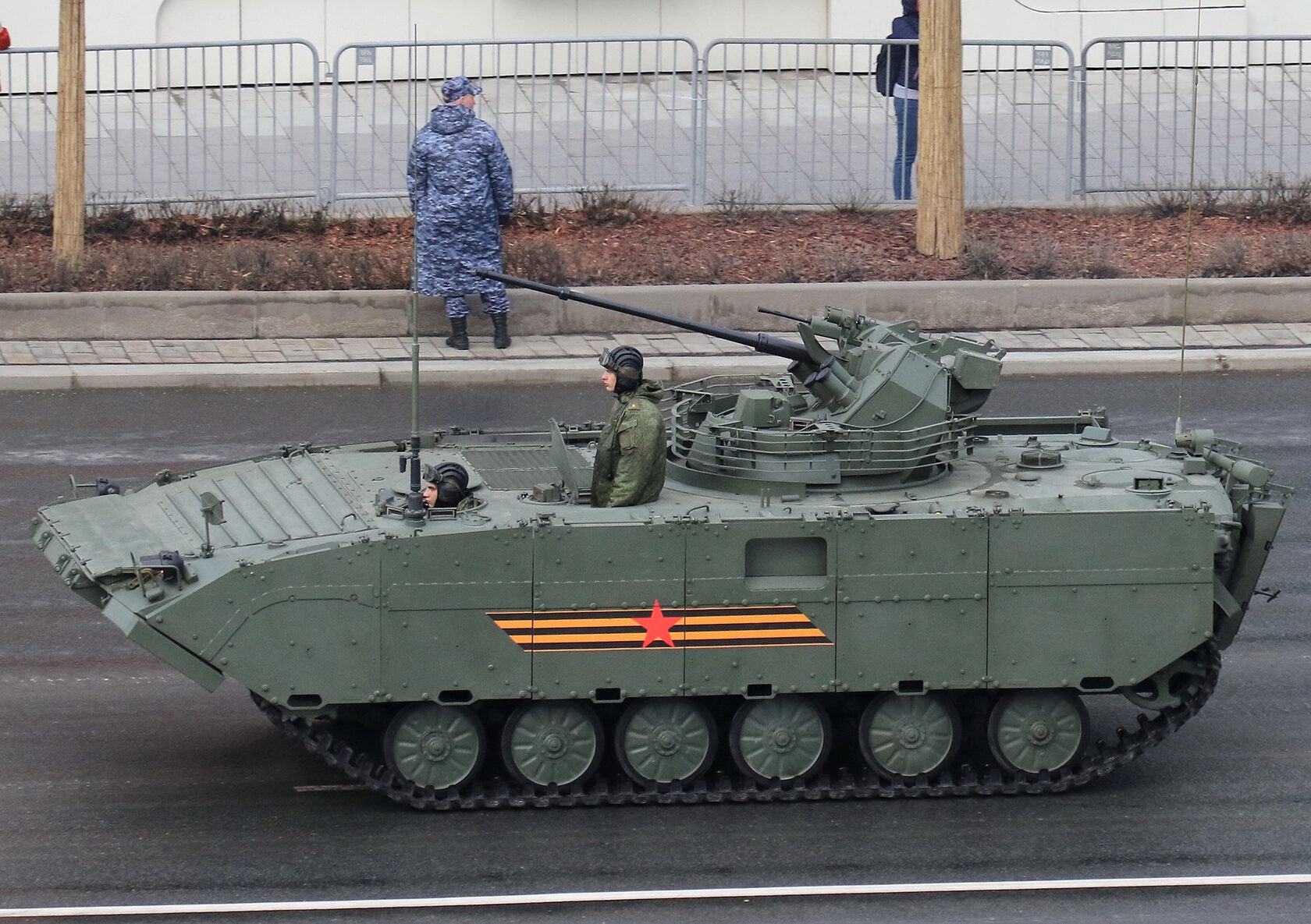 Вообще я считаю, в параде должен принимать участие самый лютый штурмовой БМП-2 с распущенными стальными тросами в качестве анти-дрон защиты. Как заявляется успешно проштурмил не один укреп.