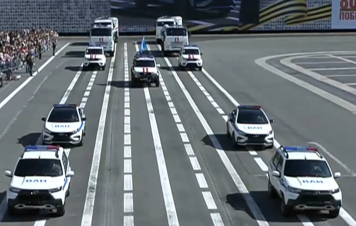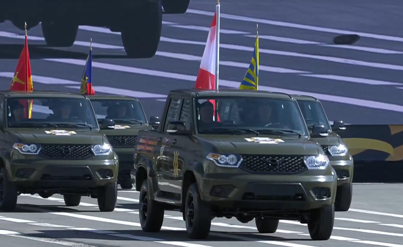 Ну и самое главное а параде - Волгушки 1.Екб 2.Ростов 3.Воронеж 4.Екб, Патриот-пикап, между прочим только у них проехал УАЗик, хотя достойны этого, с учетом использования