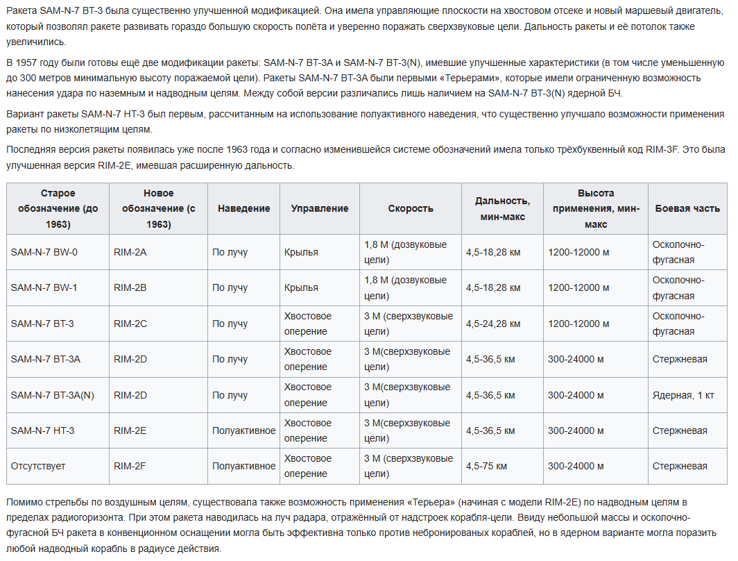 >>10241490 >взял самую раннюю модификацию Ты же сам написал: >>даже на картиночках прикрепил, обтекай. в итоге обтекла твоя жепа. >в 1962 уже вовсю клепали РИМ-2Ц и 2Д +6км наведения по лучу, англоязычная вики пишет что х2 радиус, в первом случае это минута подлетного времени, т.е. в идеальной ситуации где нигер-джон успеет вовремя разложить крылышки на ракетах, мб успеют сделать второй залп в упор. Во втором случае уже есть смысл что-то обсуждать, потому что запас по времени будет полторы минуты. Высота применения 1200, кстати, т.е. учитывая инфу анона выше выходит что подошедшие на 100-200км или ближе подлодка или ркр спокойно расстреливает группу кораблей/корабль из П35 и РИМ-2 ничем ответить на это не может. По итогу из всего комплекса обсуждать можно только ракету модификации D, с нюансом в том что это ядерка, которую просто так держать снаряженной и применять не будут. Ты писал что П35 с появлением РИМ-2 устарела, по факту выходит что нет. Выше ты ныл что не модифицировали корабли. Теперь видно что корабли и подлодки с п35 были вполне боеспособны. >AN/SPG-55, работающий с Терьерами, имеет дальность 50-70 морских миль Сколько у ракеты дальность была, столько и считал, шизик. Именно поэтому нужно получать образование и рано или поздно приземлять манямирок на факты, и приводить манямир в соответствие с ними, а не визжать впустую. >особенно при работе по эскадре Обстреливали абстрактный комплекс абстраным п35, по итогу пришлось маняврировать про целесообразность и эскадры. Вопрос только зачем если >>сбить П-35 это вполне посильная задача >ты не знаешь даже базовых ТТХ вооружений Какие плохие у барена цифры, ай яй яй. Какой же барен плохой, что цифры плохие на вики дал. Кстати о рим-24 >>18км дальность Ну йобана рот, опять 45с на сбитие. Кстати видно зачем надо было менять РИМ-2, а потом и РИМ-24 на СМ, боролись за дальность и нижний порог высоты, видимо американцы недостатки своего комплекса знали, в отличие от тебя. >Ты опять стекломоем наебенился в честь субботы, скотина блять Терпи. Но я так то ожидал что чел, который не способен дальность ракеты со своего же скрина прочитать и разделить её на скорость из той же таблицы, будет попрекать меня тем, что жиды за 21с не смогли сбить хотя бы 1 ракету из 4-х, при том что >>это вполне посильная задача