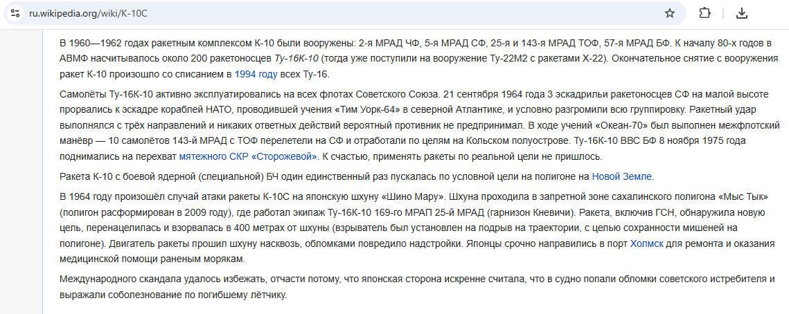 >>10252512 >соотнести профиль полёта П-35 и дальность тоже не смог Опять купировать приходится чем то другим, вместо того чтобы обсуждать цифры от которых надо было "обтекать". >невозможно загоризонтно наводить П-35 без ретранслятора если она идёт на малой высоте - не осилил Идет война Судного дня. В ходе боевых действий самолеты ввс израиля случайно обнаруживают два советских БДК, которые высаживают в египетском/сирийском порту пехоту, после чего их топят. Через 48 часов объявляется война Израилю, в ответ на объявление войны Израилю начинается война между НАТО и ОВД. Получив известия о начале войны, ркр пр 58 последовательно делает два полных залпа ГК, оба с ядерками, по группе кораблей 6-го флота США, скажем что там было 3-4 тех самых rim-2, 2 на крейсере и по 1 на двух эсминцах. На случай если этого было мало, рядом в 150км дежурила ПЛРК пр 675, которая на максимальном ходу идет в сторону этой же группы кораблей и доберется туда на расстояние уверенного пуска на малой высоте (те же 50 км) через 2-3 часа, к тому моменту находившийся в стороне от группы крейсеров и эсминцев, а потому переживший удар, авианосец типа Kitty Hawk с двумя rim-2 как раз разогнался для запуска самолетов и его легко отличить от остальных целей. Твоя задача сохранить 50 ядерных бомб и применить их по наступающим арабам. >Это просто болезнь какая-то. Копротивляться за НАСТОЯЩЕЕ САВЕЦКОЕ Напоминаю что на моей стороне американские цифры, советские цифры и объективная реальность плюс моделирование атаки. На твой стороне только визг. "Копротивляться" приходится только тебе. Терпи.