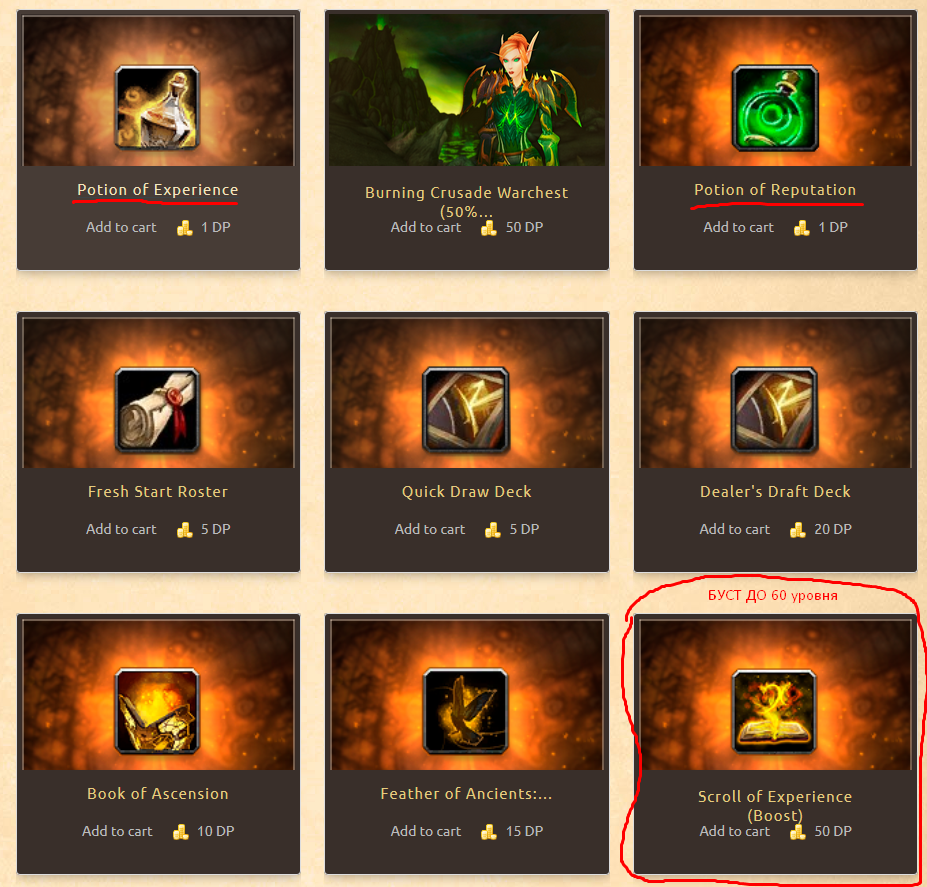 >>210579 Можешь купить райдинг, вместо фарма в пару недель голды, купить трансмоги/2/3/4 спек (которые можно купить и за голду), купить маунта лольного или пета-книжку, который является тренером классовых навыков. Еще сумки продают 14 слотовые, но это тупость несусветная, ведь в классике есть сумки в 16 слотов. Так что никаких тебе донатных эпиков и бафов.