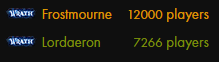 >>338110 Нет, чел, с утра почти никого нет, за альянс на оло буквально 7 человек, в городах 3 калеки, а сайт пишет 2200 онлайн. Есть аддон Census+ который сканирует онлайн, делает он это последовательными вызовами команды /who с разными параметрами, типа делит по классам, по лвлам и т.д. Но на вармейне на команду /who есть кулдаун (попробуй два раза подряд сделать /who), и из-за этого аддон не работает. Все чтобы скрыть наеб.