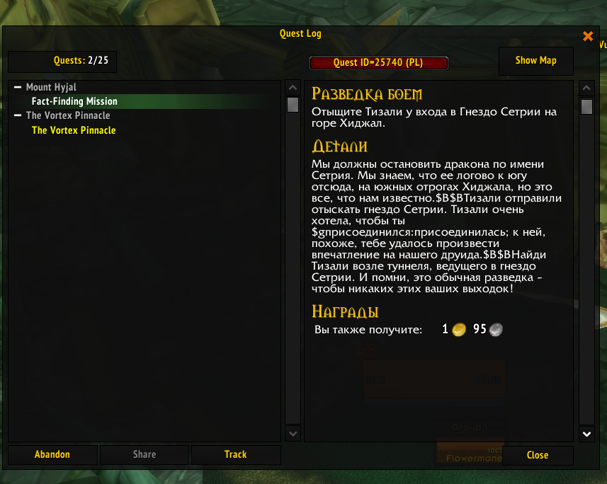 Кто-нибудь на этом сервере выполнял квесты в данжах времён сумерок? Не могу сдать задание Алурми после убийства Маннарота в Источнике Вечности. Она по небу идёт, хз, чё делать
