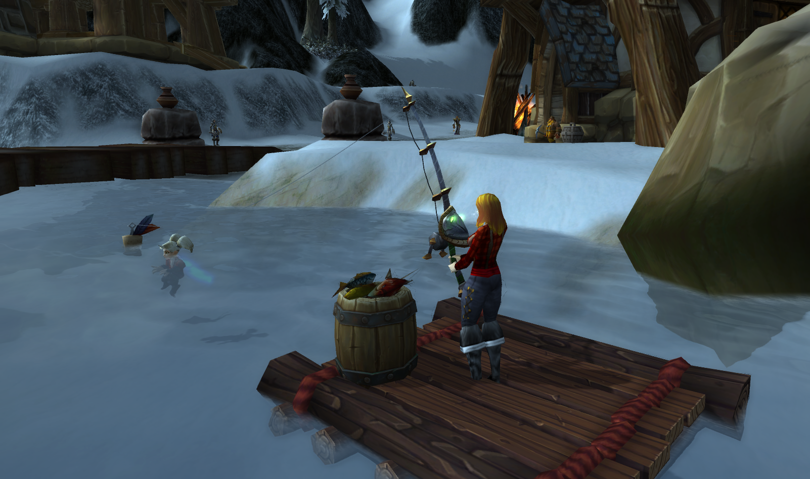 Ворген Джейкоб Андерс ответственен за добычу рыбы. Как минимум, он сидит рядом с удочкой и рыбой... Три гнома из "Лиги исследователей": Килей Легкозубчик, Лупус Легкозубчик, и Твитс Легкозубчик Воительница Альянса отдыхает в гамаке)) И правильно: никакое дело не сделается, если не спать и не питаться Дворфы-стрелки - это хорошо. Но и две пушки лишними не будут