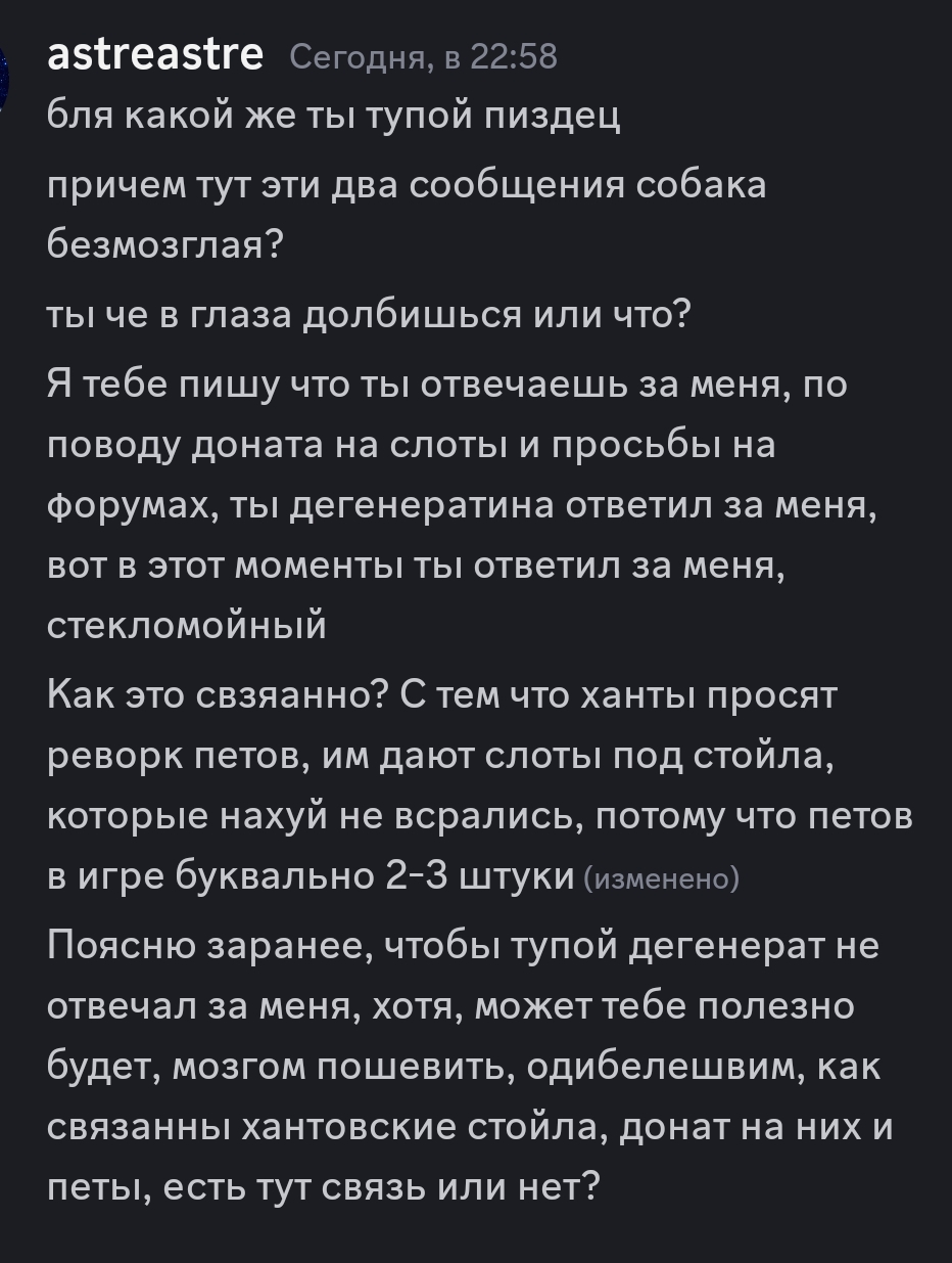 Администрация Написал гомосексуалам, обсуждающим свои грязные адюльтеры на весь чат "calm down или enough"? Повезет - получишь мут, не повезло - минус перс или акк. В чате идет постоянная травля русских с комментариями ГМов ":)". Сроллил за рестор дру клоз на хил у шприста? Он пишет ГМу и ты ловишь бан за ниндзя лутинг. Случайно сагрил мобов на какого-нибудь нытика? Он зовет ГМа и тебе удалят перса за грифинг. Запомни, если ты отыгрываешь мимо повесточки и у тебя ру айпи=ты токсичный, есть большая вероятность, что не докачаешься до капа. И упаси господи тебе как-то задеть, помешать РПшеру, который идет пешком "/" в одной шляпе и галстуке на рандеву со своим "бойфрендом", ты сам знаешь, что будет.