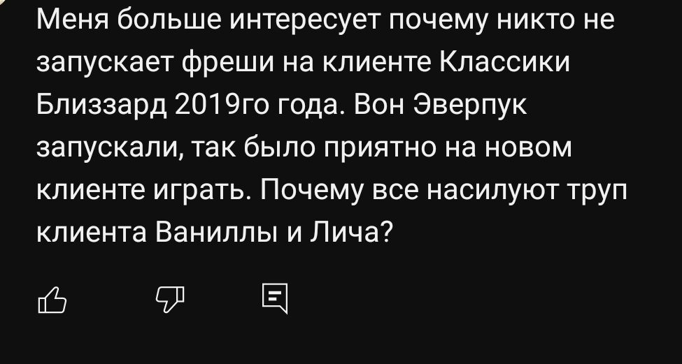 Че, ждёте проект жопеч? Признавайтесь. Я вот в принципе ВОВ дропнул недели на три, чтобы вкатываться было легче ментально, но судьба сервера неизвестна, вероятно вернусь сюда в случае чего.