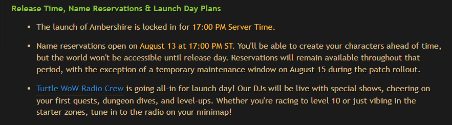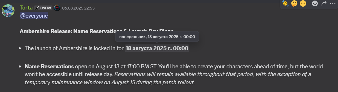 >>409905 Мне кажется они ошиблись на сайте с временем. Оно показывает, что сервак откроется в 19:00 по МСК, но на самом деле он открывается на час позже. Но я не хочу об этом писать в дискорде им, я стесняюсь.