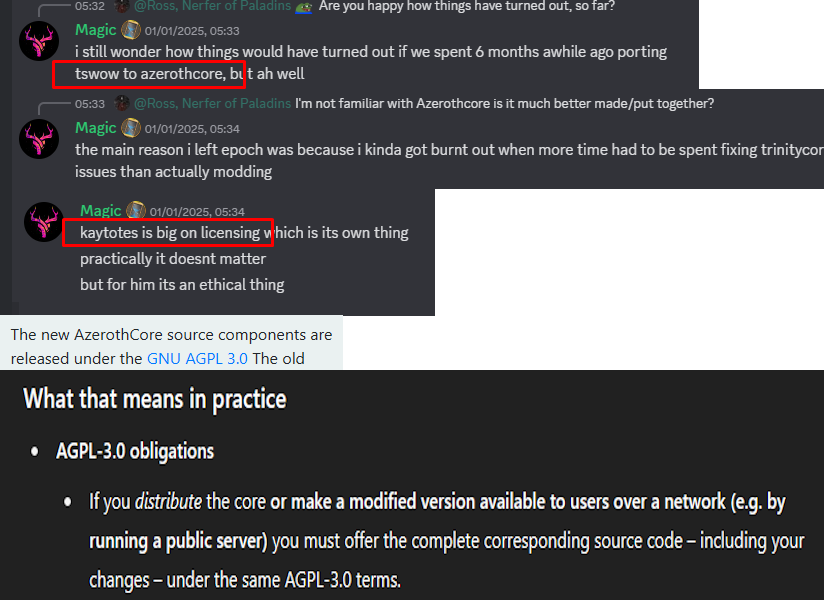 >>406486 как уже сказали выше, они хотели более новую версию сервера/клиента тринити это по сути эволюция мангоса но сирус как ты понимаешь наработками за бесплатно, и даже за деньги наверняка делится не будет. единственная возможность это втерется в тусу и в личном порядке привлечь их одмэнов, что нормальная комманда бы и сделала. но как тут уже все поняли комманда там из зумерья и сжв шизов, так что соц навыки это не к ним