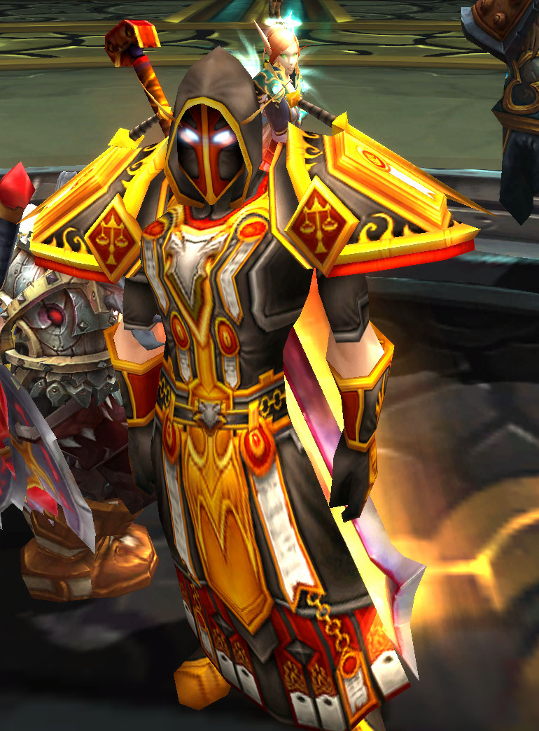 Ого, вот эта человечинка очень выделяется на фоне других. Прям оригинальный табарт, наверное самый оригинальный что я видел. Смотрится ярко так, вообще комбинация трансмога, табарда, цвета кожи и волос - круто получилось В ЛФРе нам так люто напихали, что была страшная дизмораль, что рука уже потянулась качать RDR2, но [Crystal of Insanity] выпал с первого раза